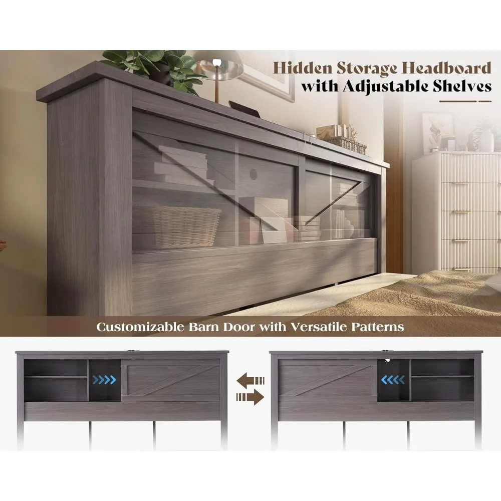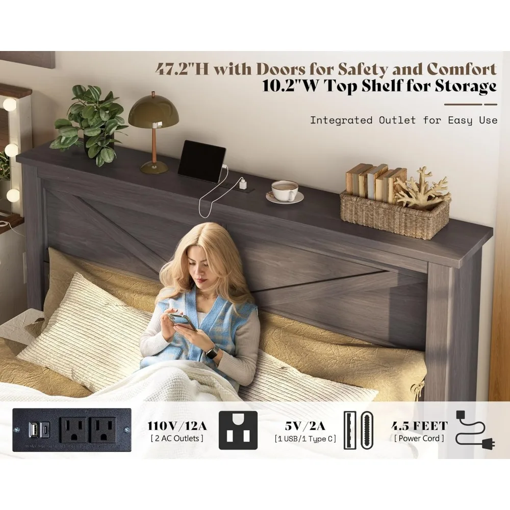 - [47.2" Headboard with Hidden Space] Beds featuring a 47.2" H headboard with a hidden door panel for storage space. The door panel is adjustable in both directions and the storage shelf comes with adjustable shelves for your convenience