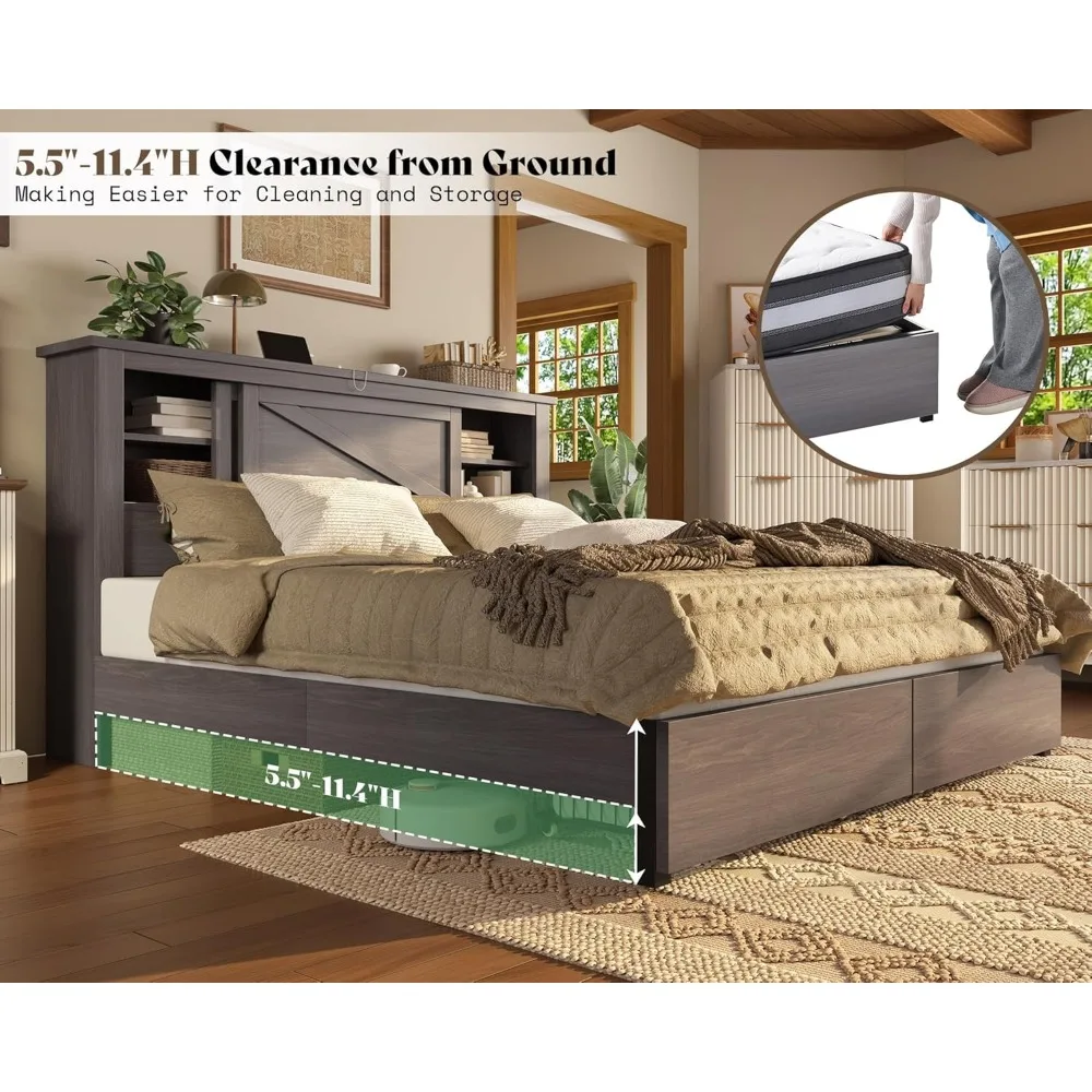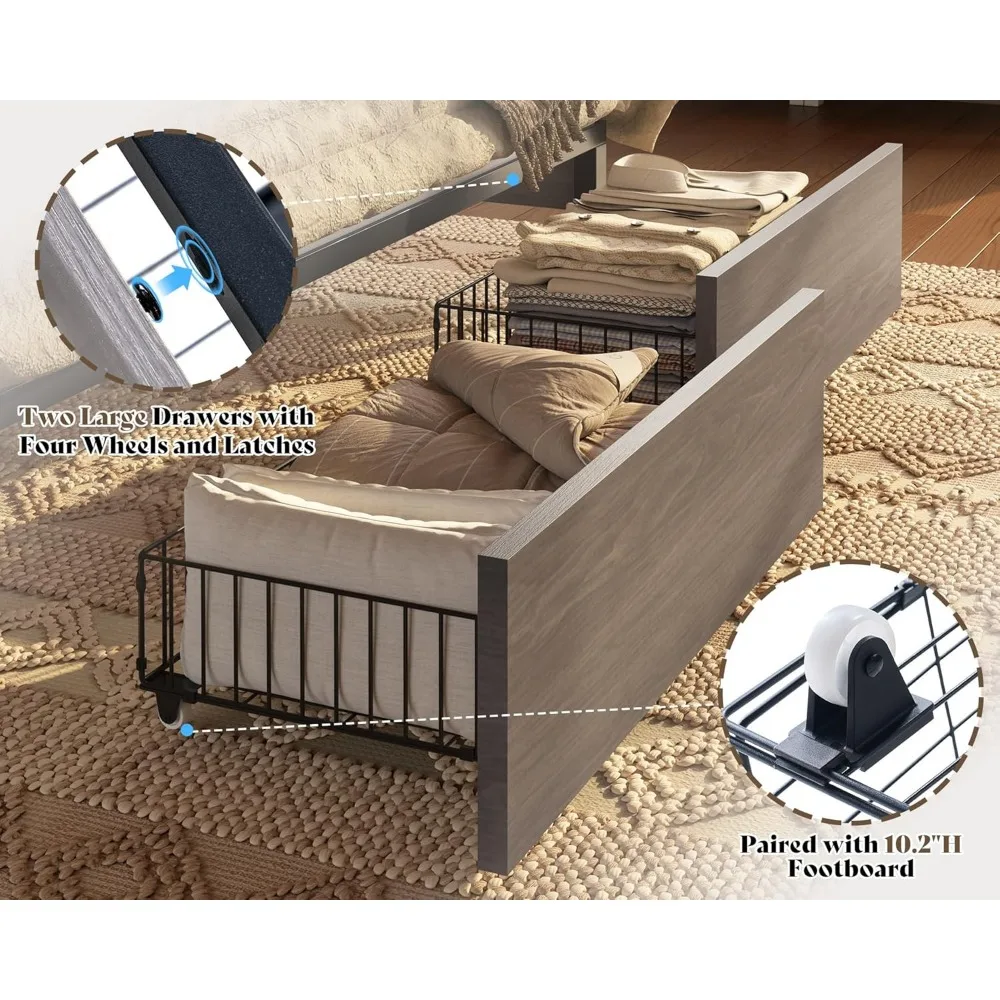 - [Convenient Storage] With a 10.2" W top shelf on the headboard, you can securely store your essentials. The headboard also features 2 standard plug outlets, 1 USB port, and 1 Type-C port. Additionally, 2 drawers provide extra dust-free storage space