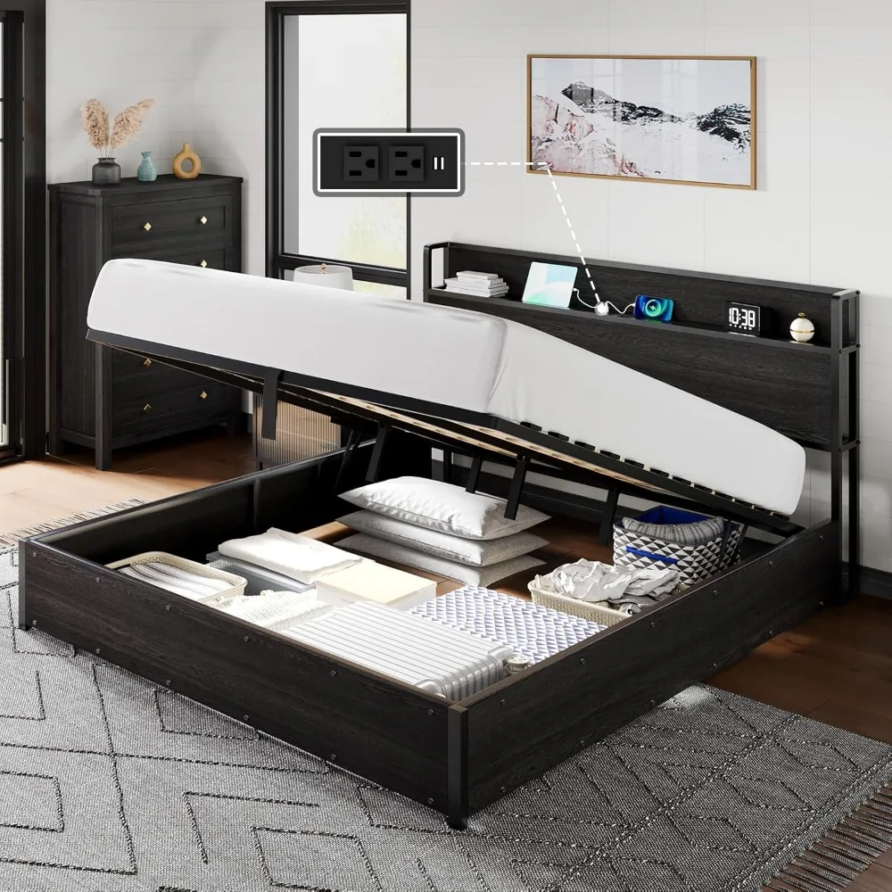 • Lifting Easily: The lift up bed frame features a smooth gas-lift mechanism, effortlessly lifts and no worry about the mattress sliding. Perfect for small bedrooms and apartments.