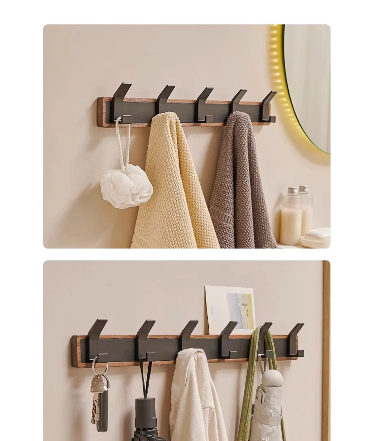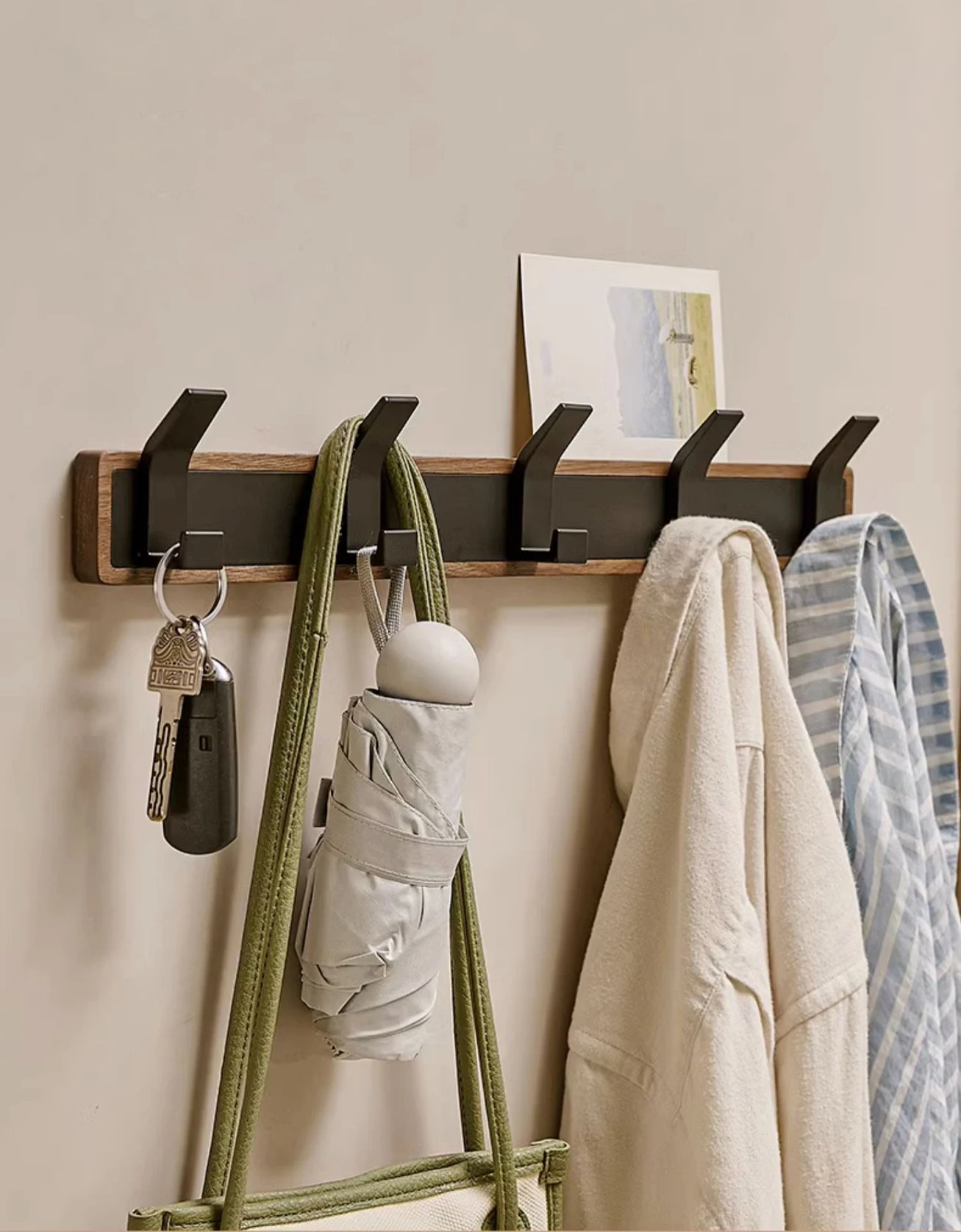 Crafted from black wood, this hook offers durability and longevity, ensuring it can withstand daily use.
