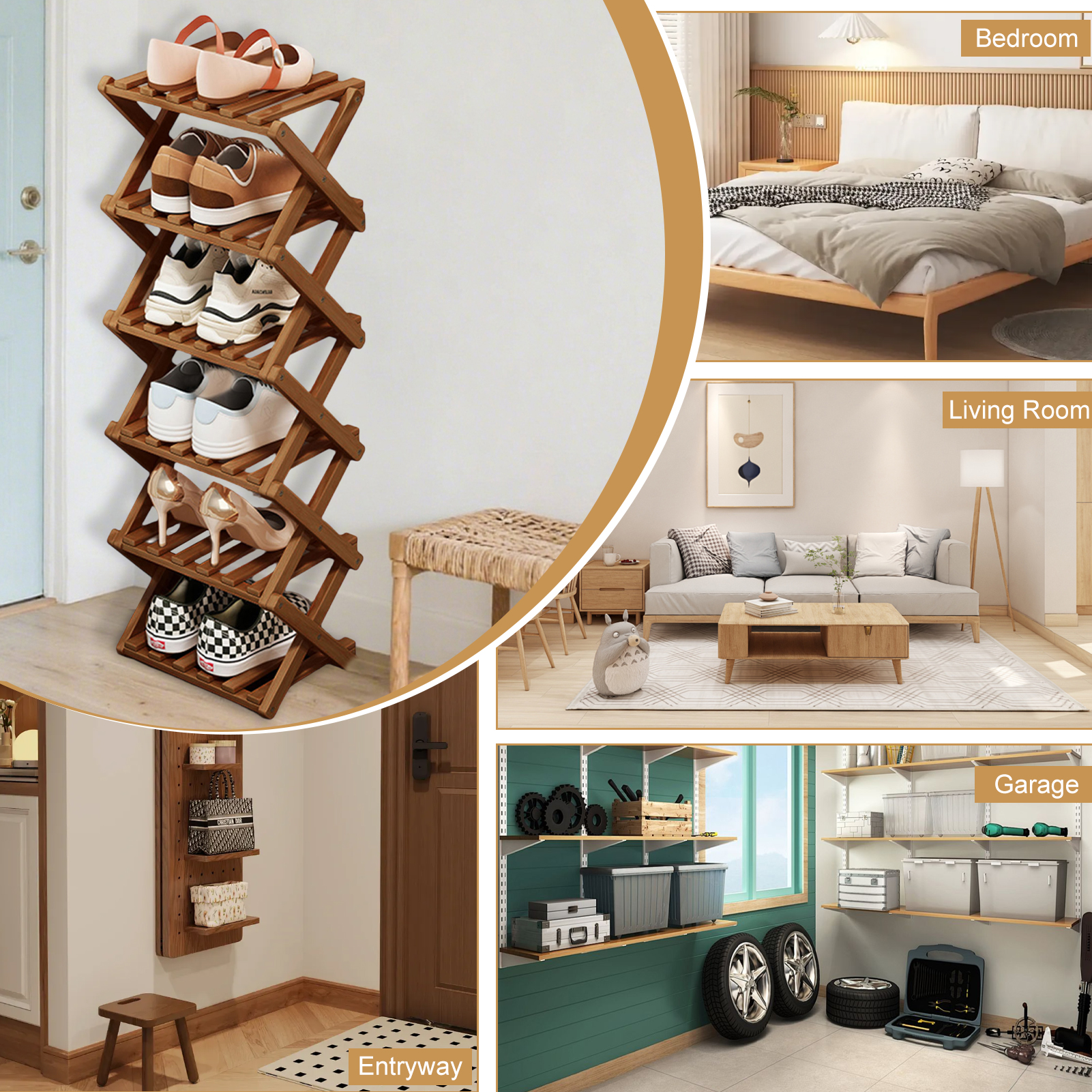 With its large capacity, this bamboo shoe rack can accommodate various shoe sizes, including longer shoes and larger sizes, ensuring that all your footwear fits perfectly. Not limited to shoes, this versatile wooden rack can also be used to store plants, pictures, trinkets, candles, and more. Its sleek and modern design complements any decor, adding functional style to your space.
