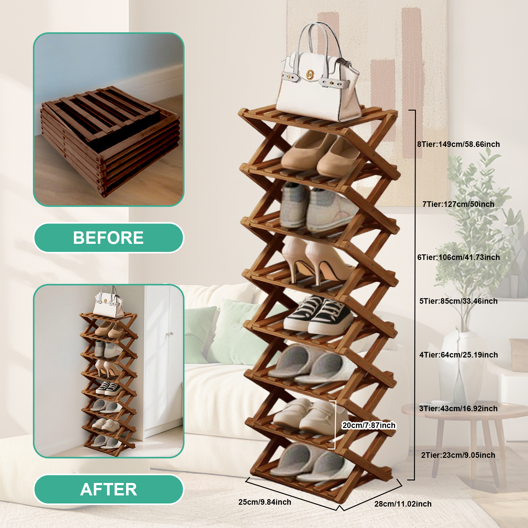 Introducing the folding shoe rack, a space-saving shoe cabinet that is perfect for keeping your shoes and accessories organized in wardrobes, entryways, garages, and more. This shoe rack requires no assembly, simply unpack, unfold, and start using it right away. Its foldable design allows for easy storage and transportation when not in use, saving you space and hassle.