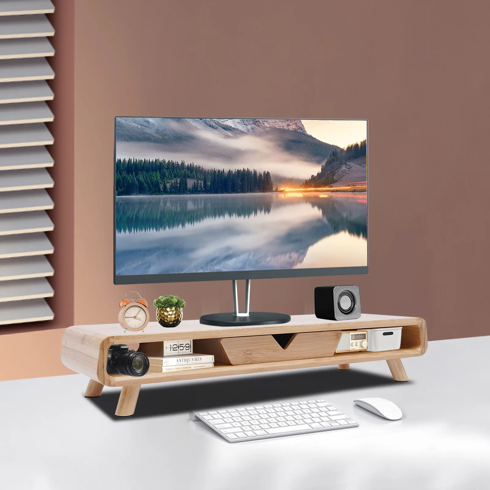Installation-free: The bamboo monitor stand doesn't need complicated installation steps. You can use it directly after receiving the goods, saving time.
