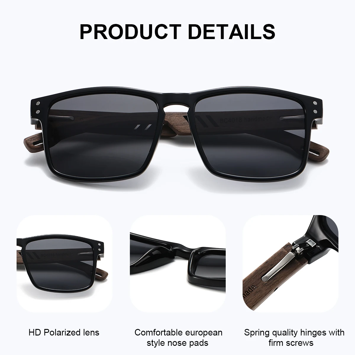 Featuring a robust walnut foot spring hinge, these sunglasses ensure durability and longevity.