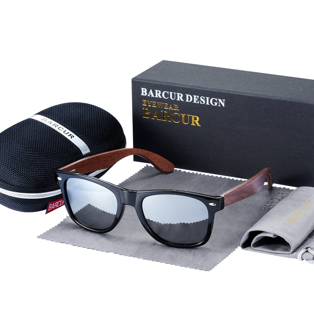 BARCUR High Quality Black Walnut Sunglasses Anti-Reflecti Men Women Mirror Sun Glasses Male UV400 Wooden Sunglass Shades Oculos