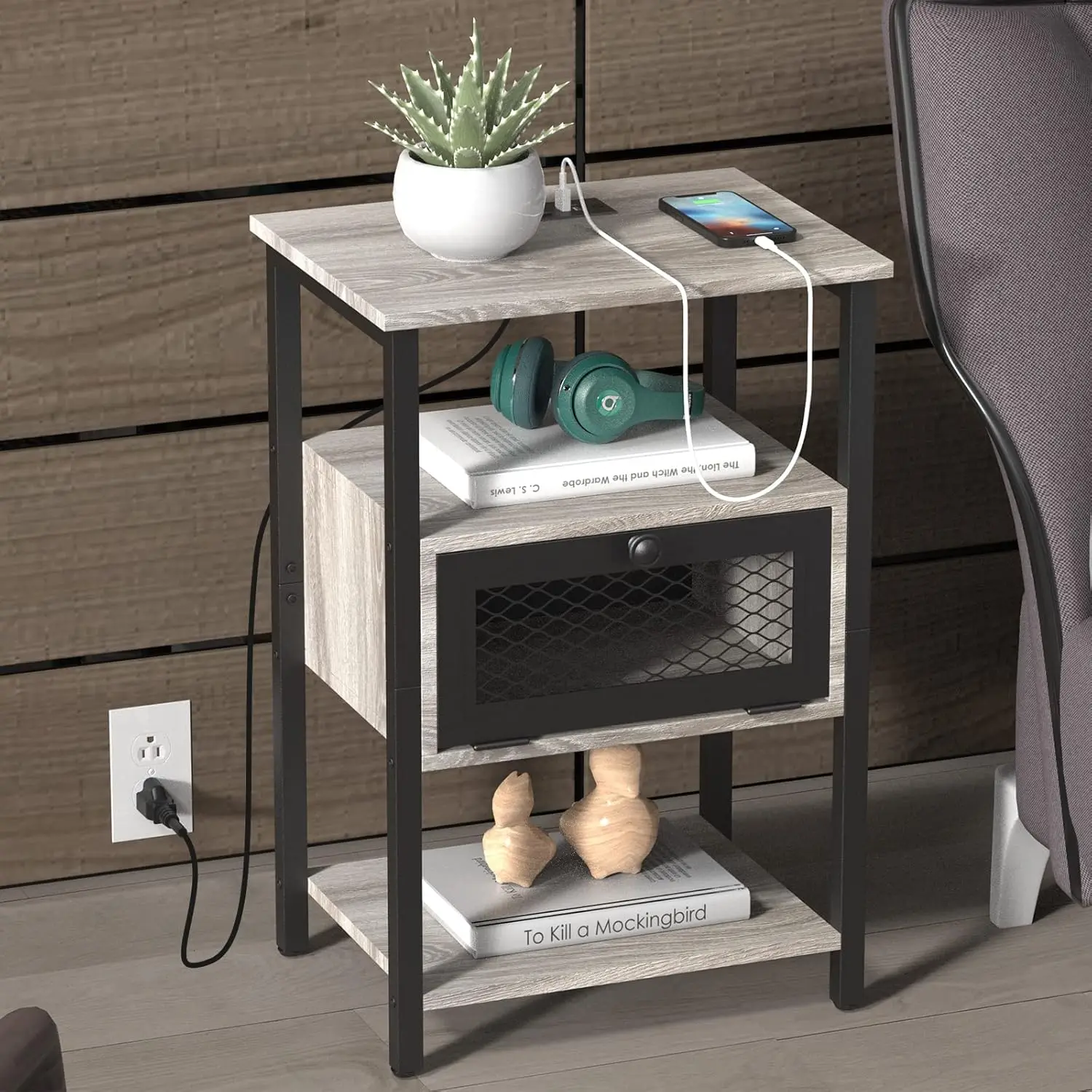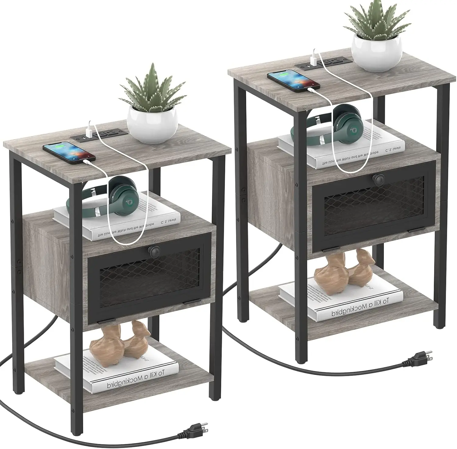 This bedside table with charging station is designed with 2 standard sockets and 2 USB ports, which can simultaneously charge various electronic devices such as mobile phones, tablets, laptops, etc. It brings the power outlet closer to you, making it more convenient when you're lying in bed or on the sofa.