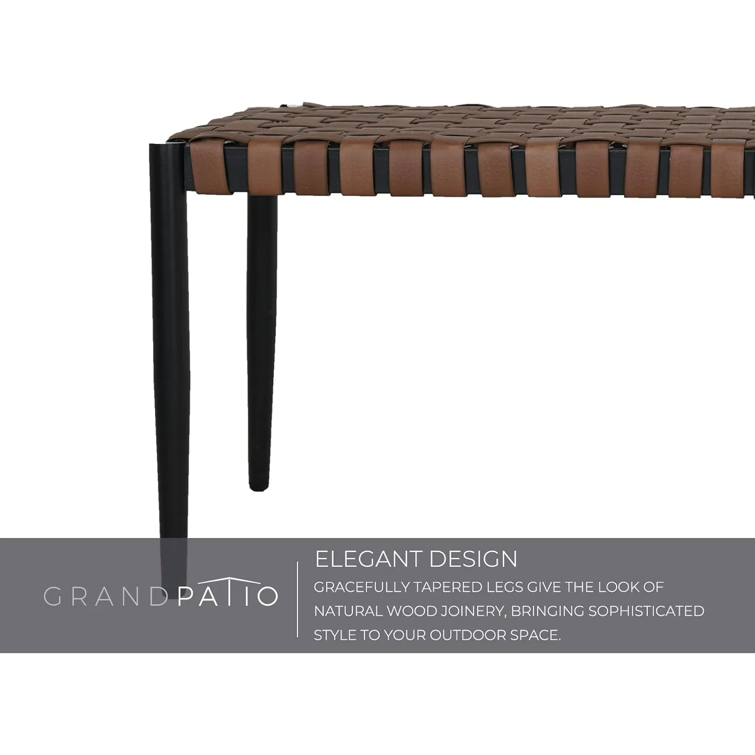 - LEATHER-LOOK: Bold and beautiful! Our handwoven wide strap faux leather resin wicker is tested for year-round outdoor resilience with enduring beauty and strength! Rated at 1500 UV hours, it is easy to clean and extremely resistant to the sun, rain, heat, and cold to not crack, sag, or fade (Weight Capacity:350 LBS)