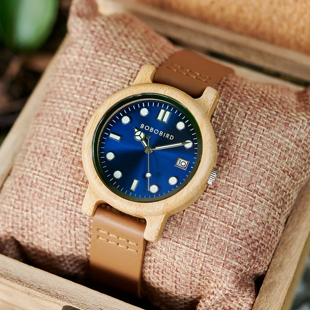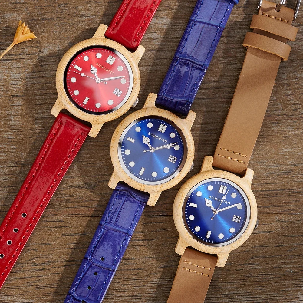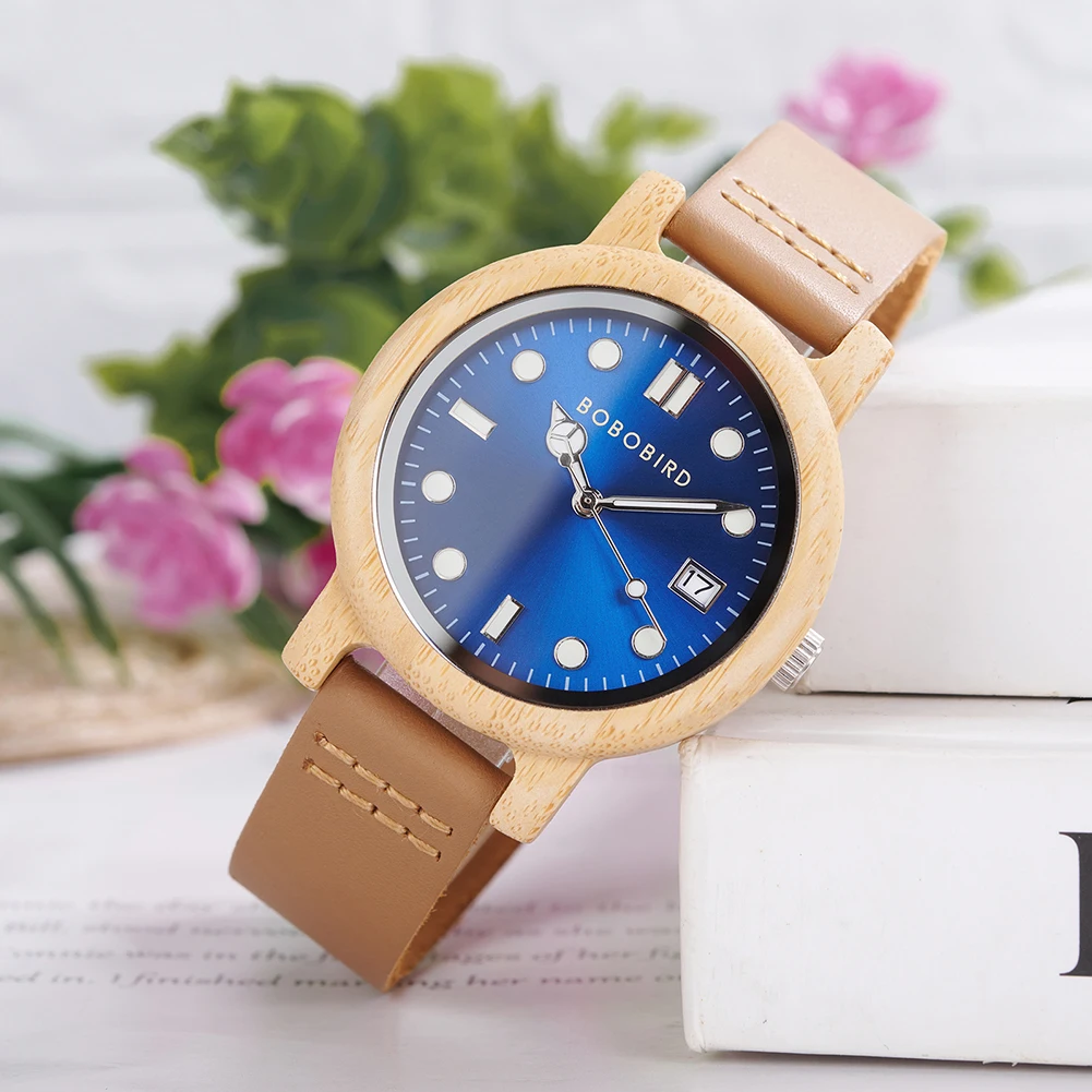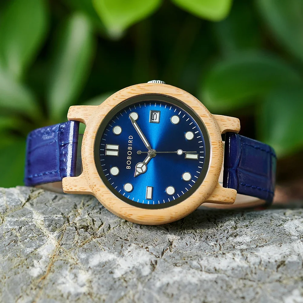 Natural bamboo · Genuine leather strap · Lightly luxurious timepieces crafted exclusively for women