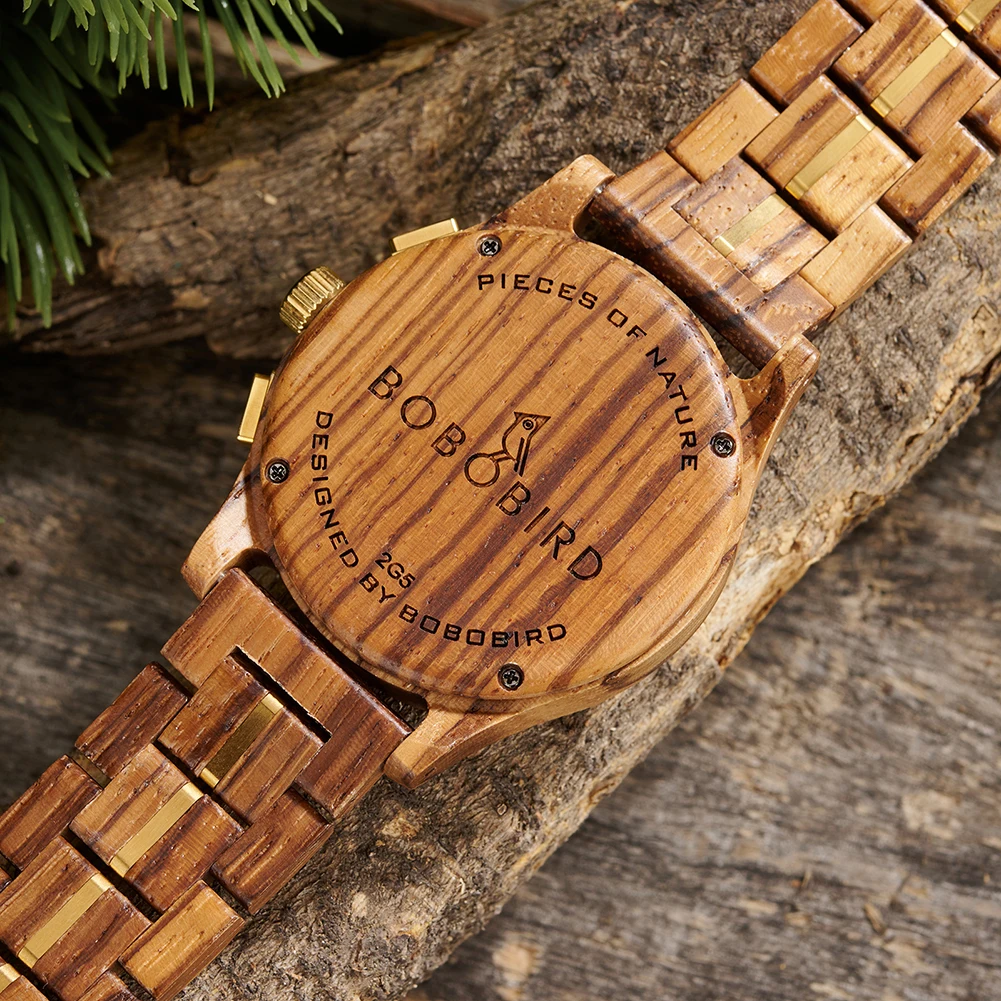 BOBOBIRD Wooden Men's Watch combines the natural wood strap with metal bezel and links, distinguishing it from the common all-metal and leather models, and satisfying people's dual pursuit of “natural texture + industrial sophistication”. The warm texture of the wood collides with the cold and hard luster of the metal, and the texture of each watch is different, forming a unique visual memory point.