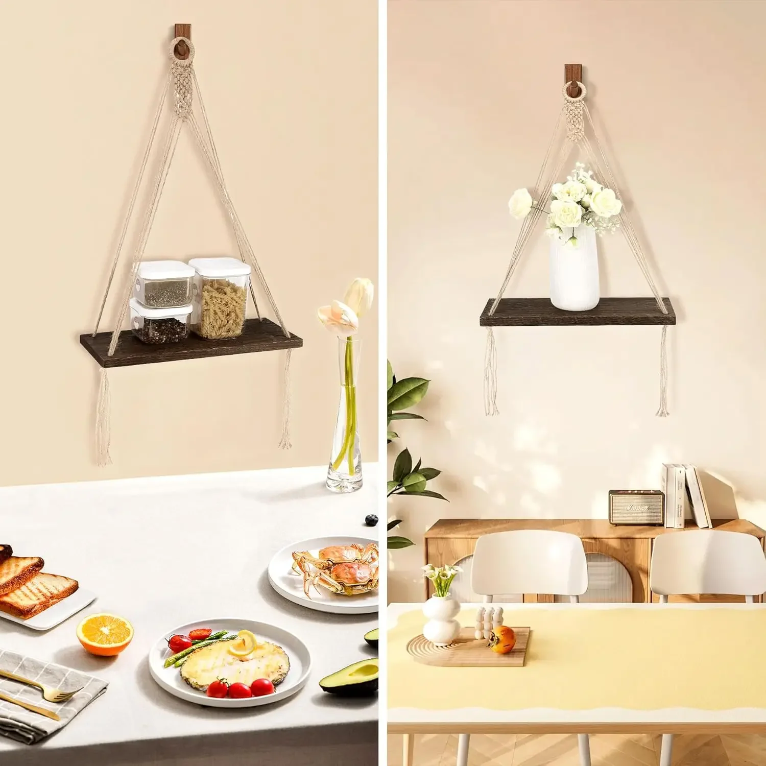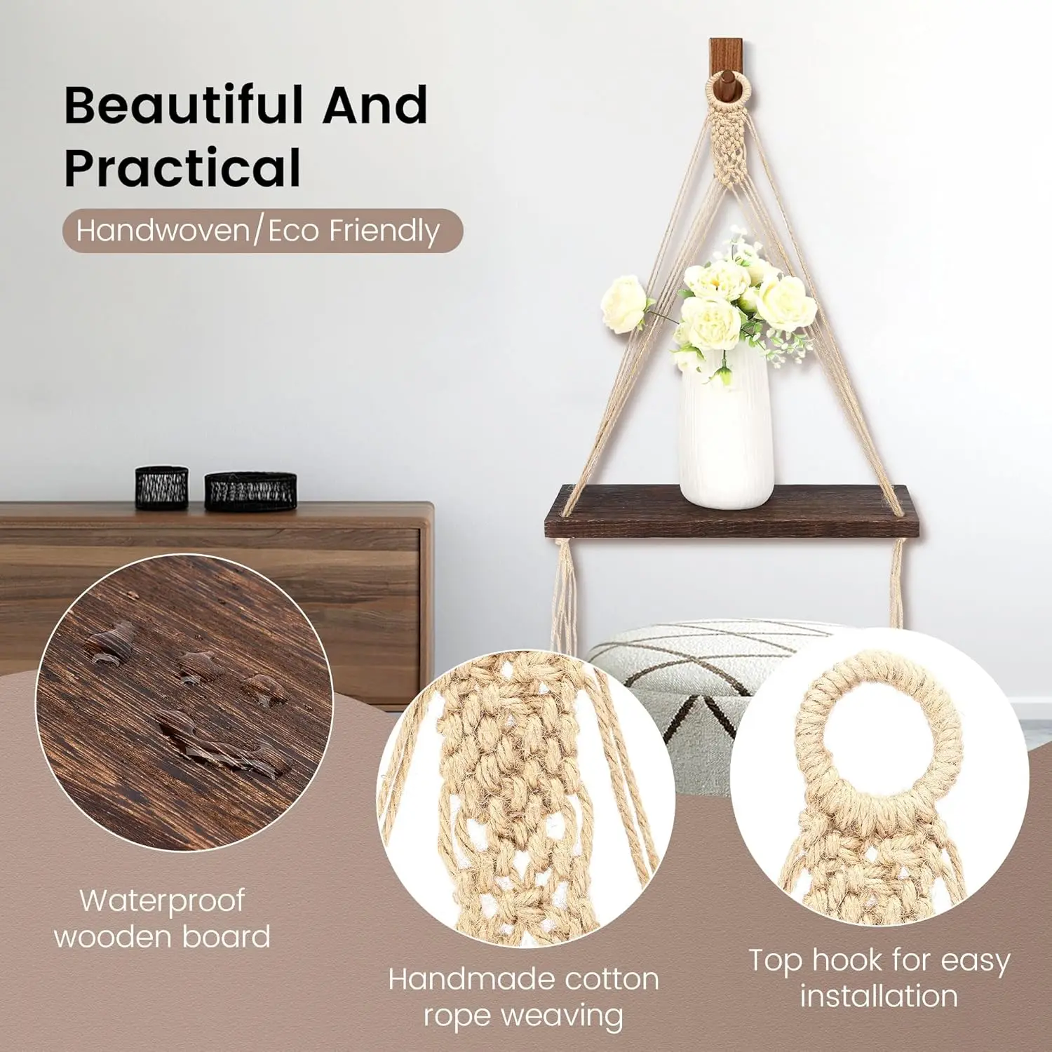 - Versatile Application: This multi-use Macrame hanging shelf can be adorned on your wall, utilized as a plant hanger, and fits well in your living room, bathroom, bedroom, dorm, kitchen, nursery, apartment, and office.earthy room decor aesthetic