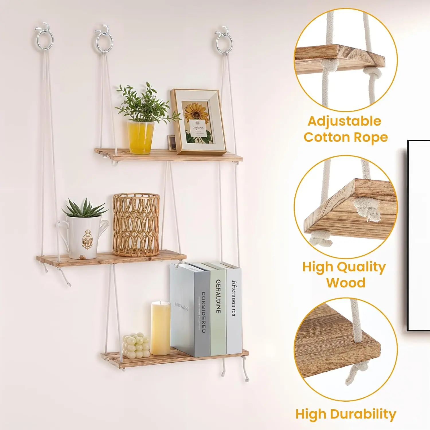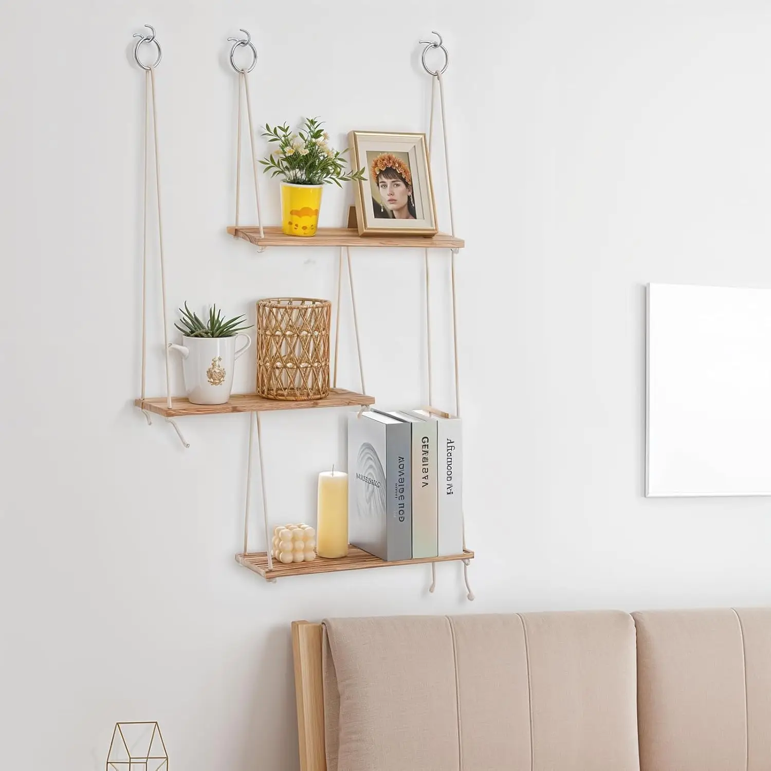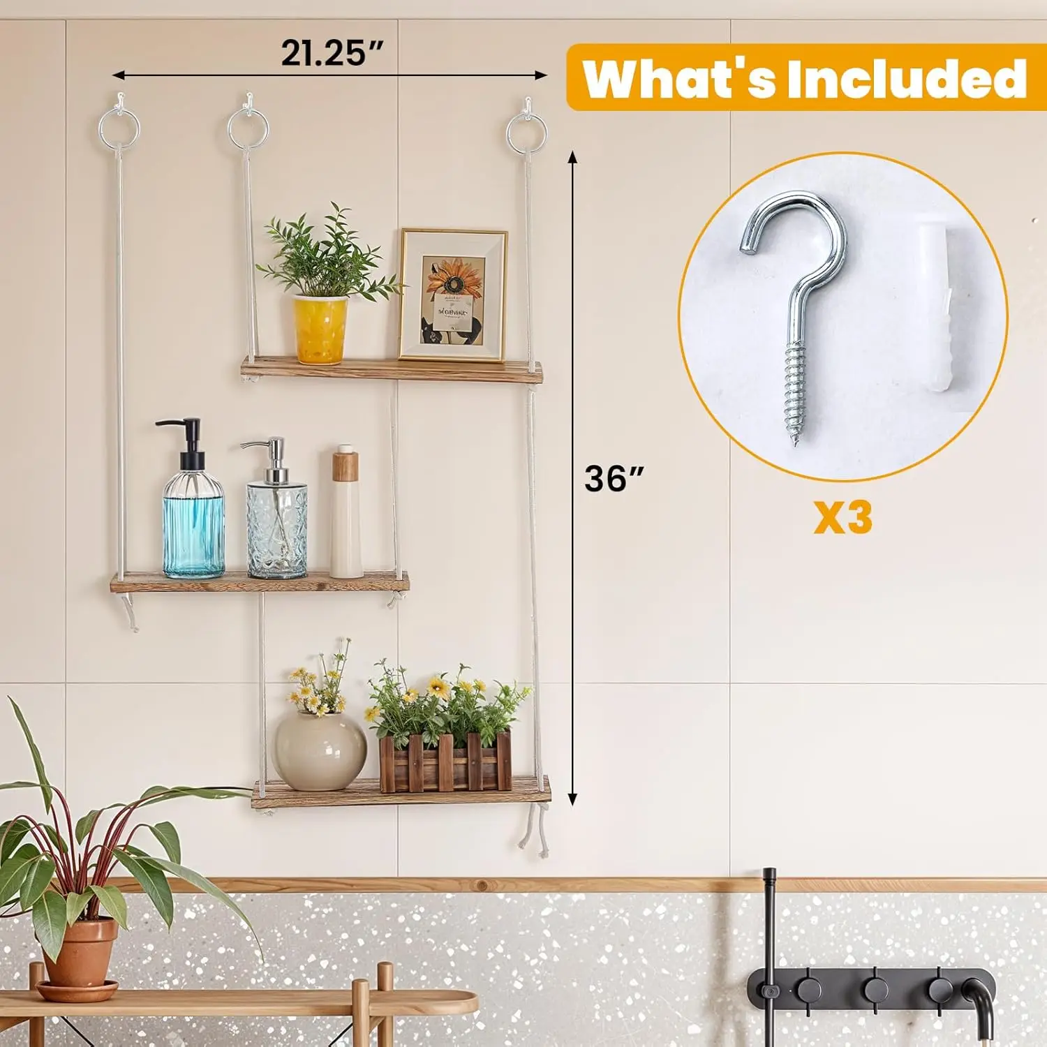 - 【Perfect Home Decor Accent】- Our boho wall shelves for plants are perfect for bedrooms, bathrooms, windows, nurseries and all decor. They provide convenient storage space. Add a touch of nature with our hanging plant shelves.