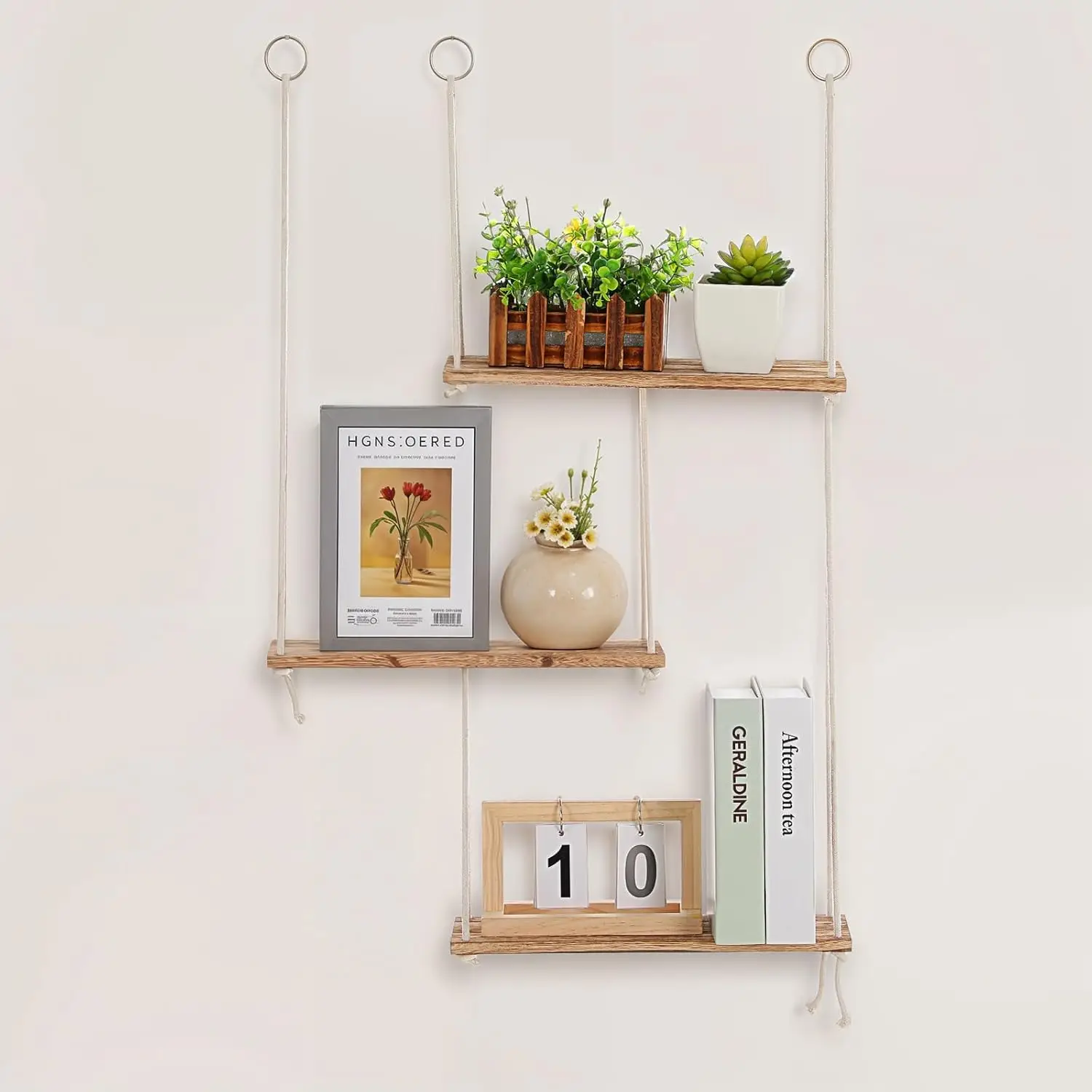 - 【High Quality Bohemian Room Decor】- The hanging shelves for wall decor is a bohemian style wall shelf that easily fits into any decor. The hanging bookshelf material is natural wood. The hanging window shelf is thick, which adds strength and durability to the structure.