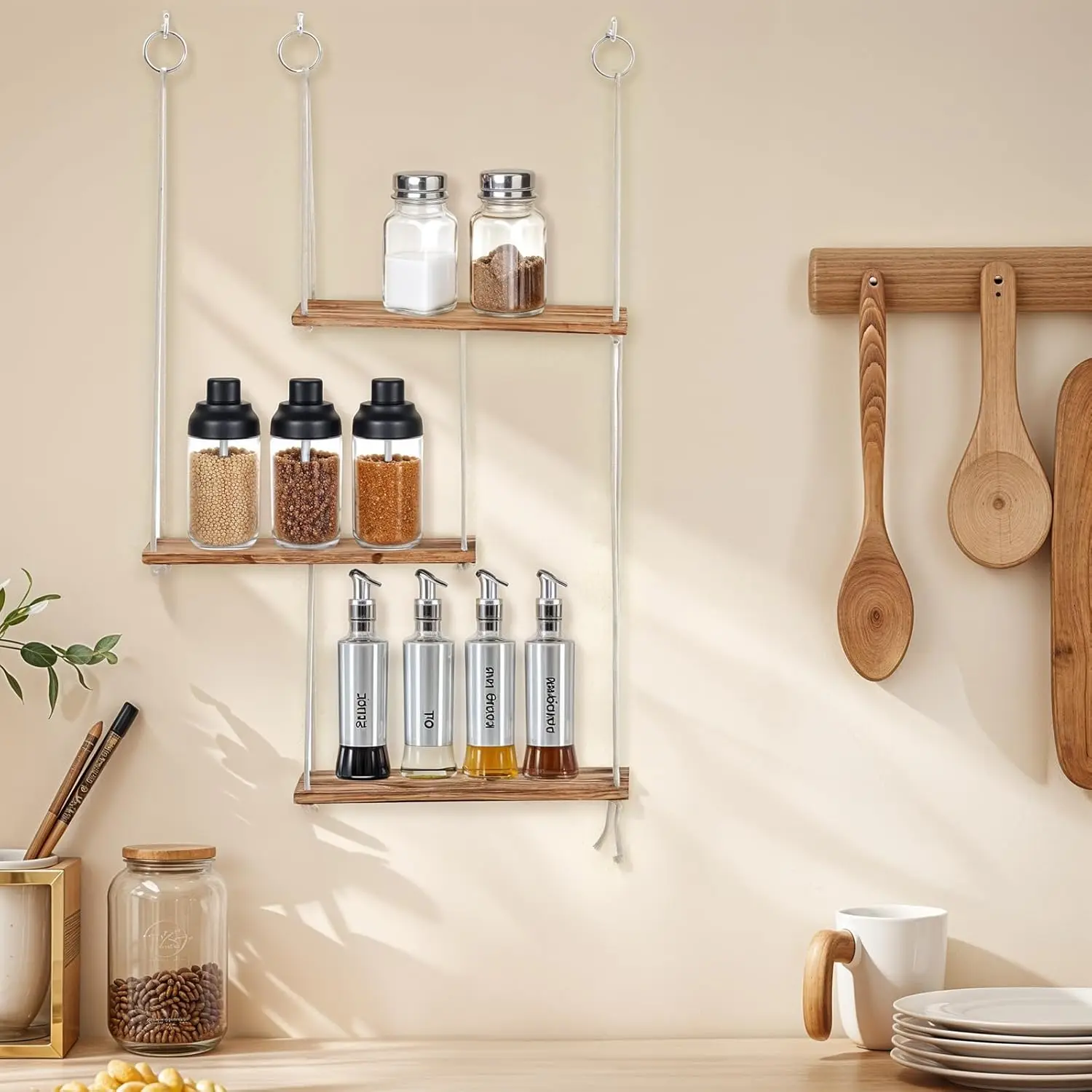 - 【Multi-Purpose】- It has many uses! Use as a kitchen wall shelf to store spices, a shelf for the bedroom, display accessories, stereo electronics, a decorative wall shelf for plants, a hanging bookshelf for the wall, and a macrame shelf for the nursery.