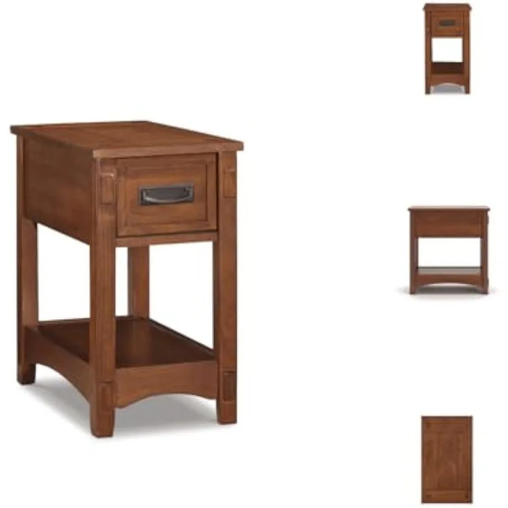 - MISSION STYLE CHAIRSIDE END TABLE: Handsome living room side table with mortise-and-tenon decorative details. Features include a drawer with a removable tray and a fixed lower shelf for stashing blankets, remotes, books, and more