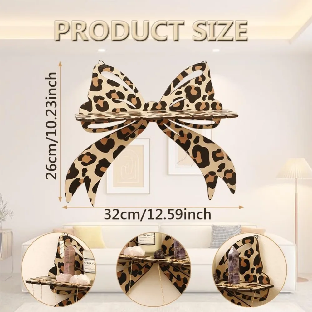 - 【Wide Application & Storage Solution】 - With 1 tier, the Leopard Print Bow Wall Decor Shelf offers ample space for storing books, flowers, decorations, toys, mini potted plants, photo frames, and more. It is suitable for bedrooms, living rooms, bathrooms, kitchens, offices, and various home style spaces. This shelf provides a practical and stylish storage solution for all your essentials.