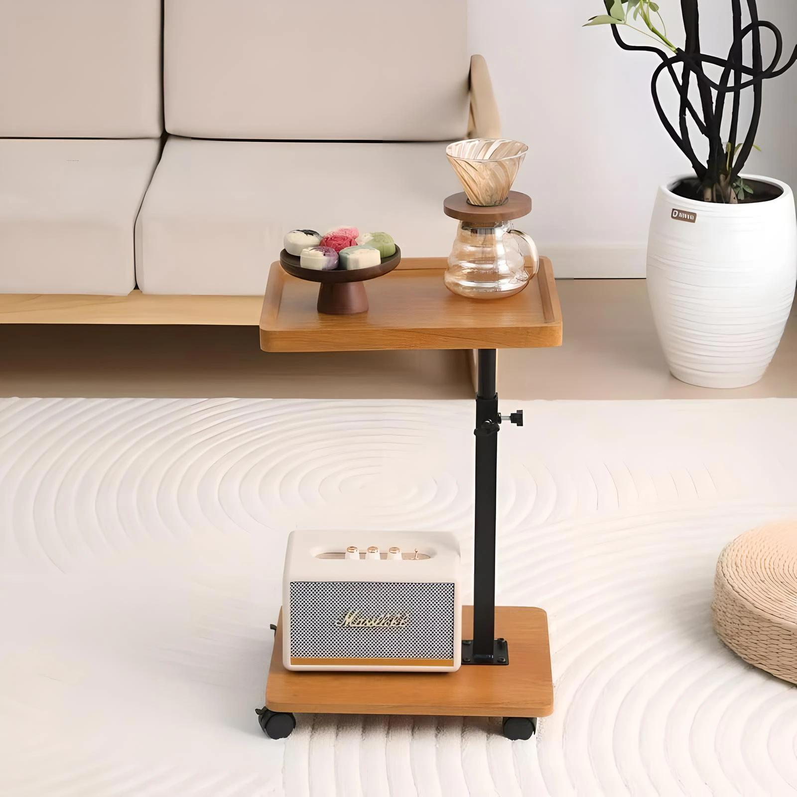 C Shaped Living Room Side Table Sofa Side Cabinet Mobile Coffee Table Simple Small Square Table Bedroom Bedside Table With Wheel
