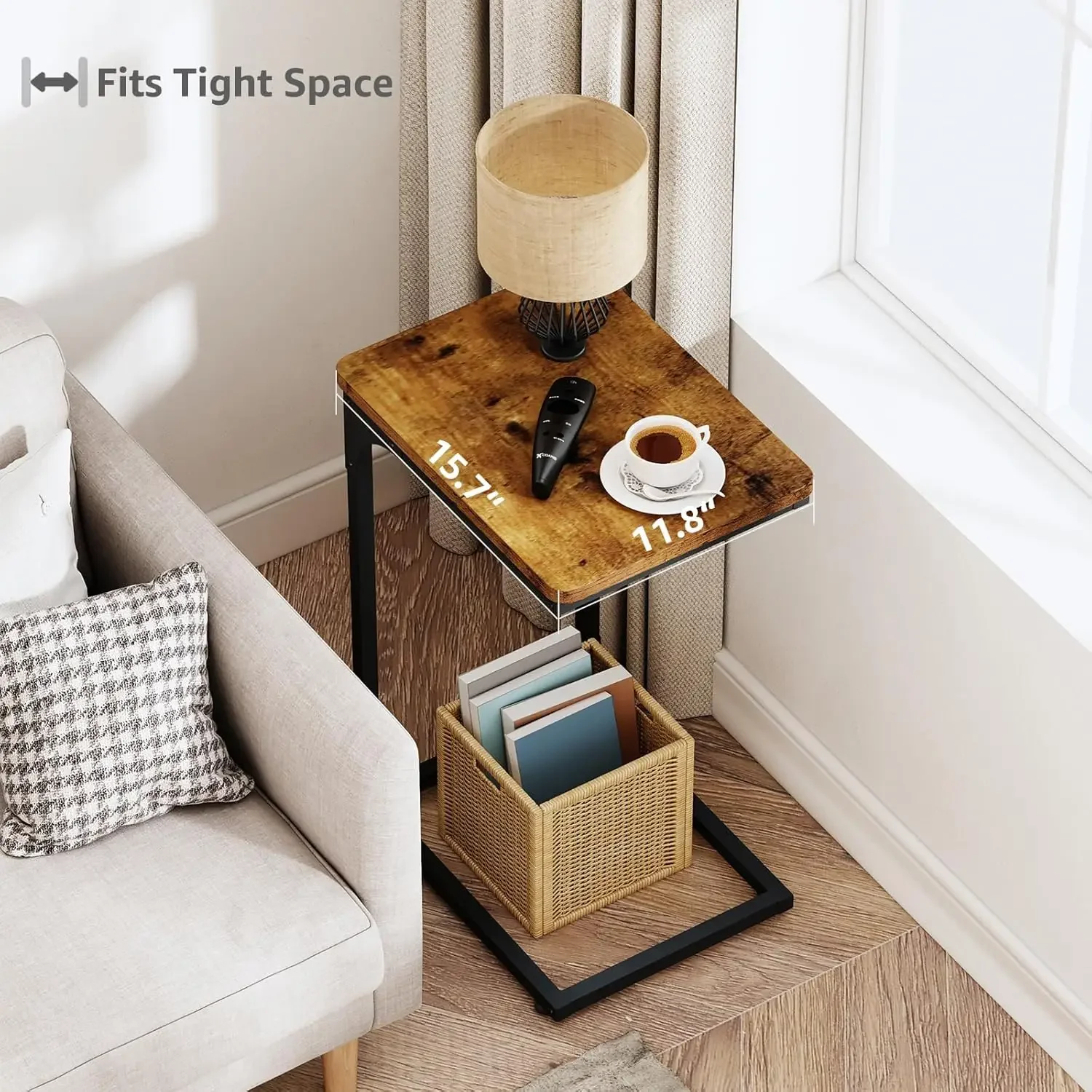 C Table Side Table Set of 2 Living Room Sets C Shaped Couch Tray End Tables Farmhouse, Rustic Brown