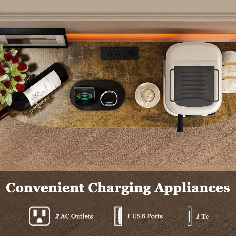 • Wine Bar Cabinet with Power Outlets:This Gohapins coffee bar cabinet has three built-in plugs and two USB ports to provide power for your various small kitchen appliances, and you can also put your audio on it and use the USB port to power it,listen to music, how wonderful!Allowing you to conveniently power up an ice maker or coffee table and charge your devices. Never worry about power issues during your gatherings
