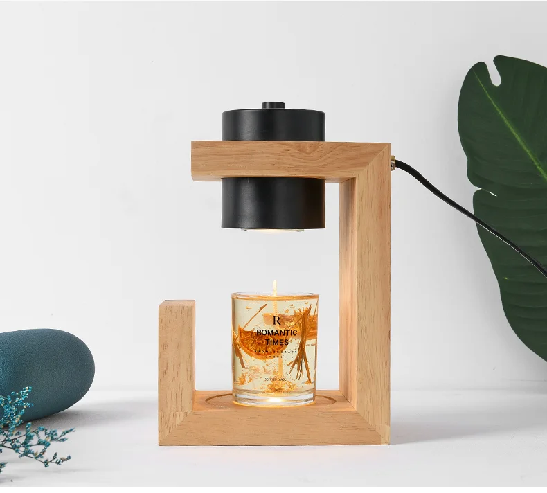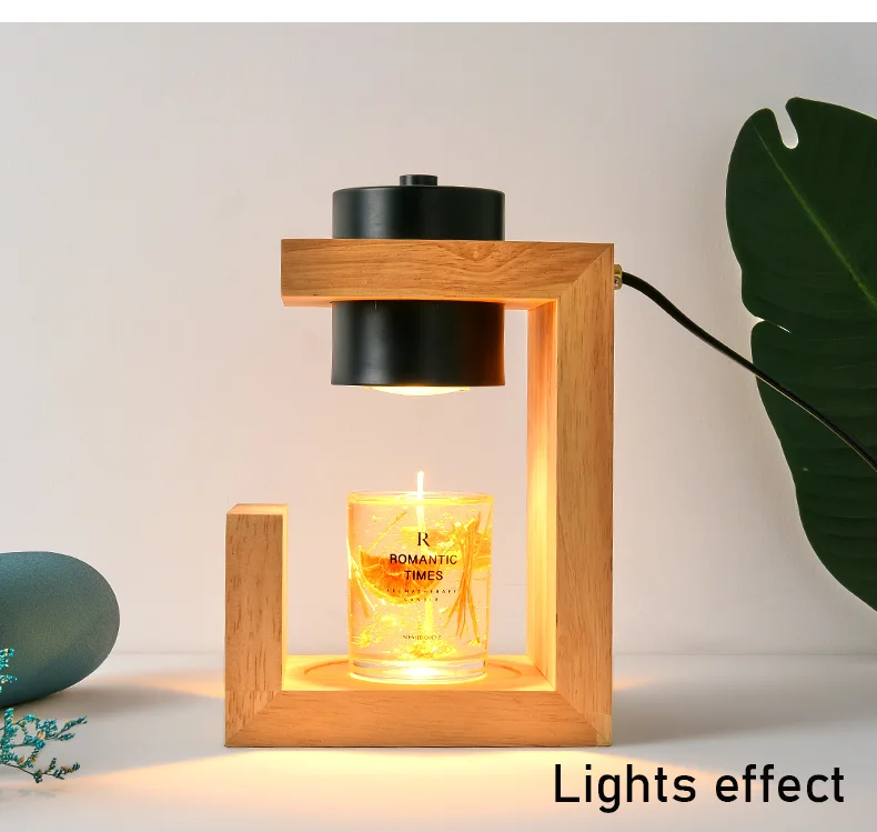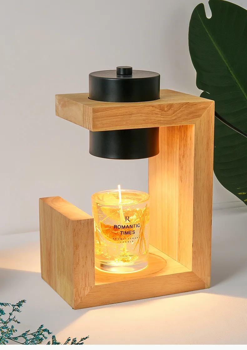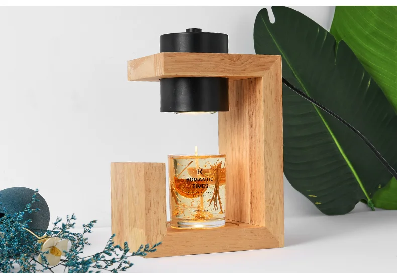Electric candle heater wax melting lamp wax melting lamp lantern aromatherapy table wood base night lamp home bedroom bedside decoration