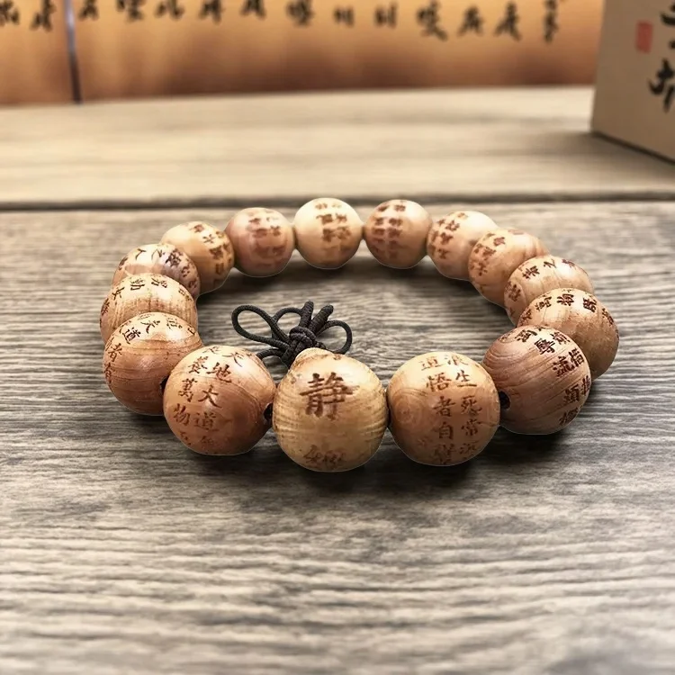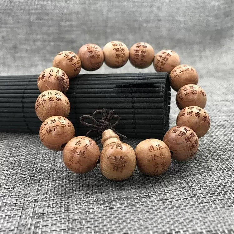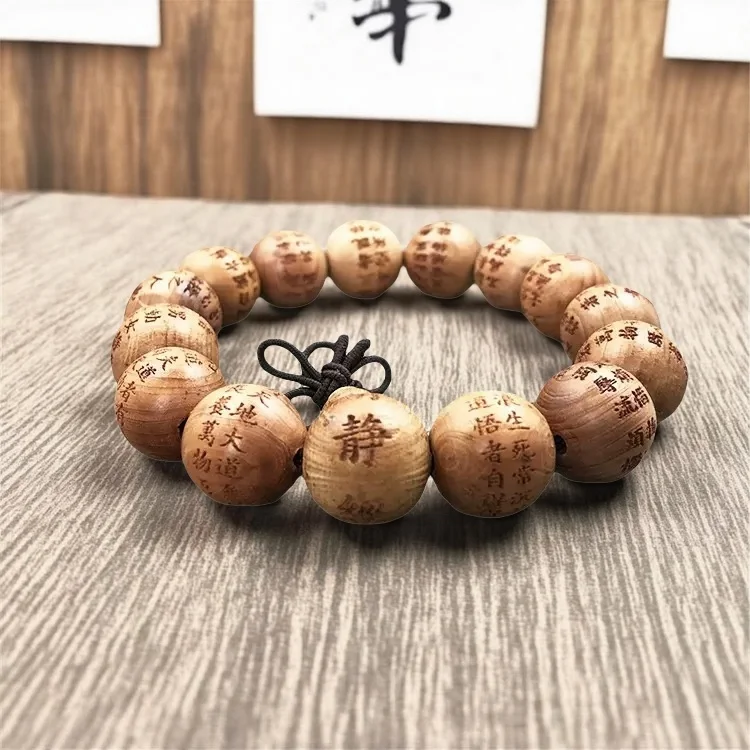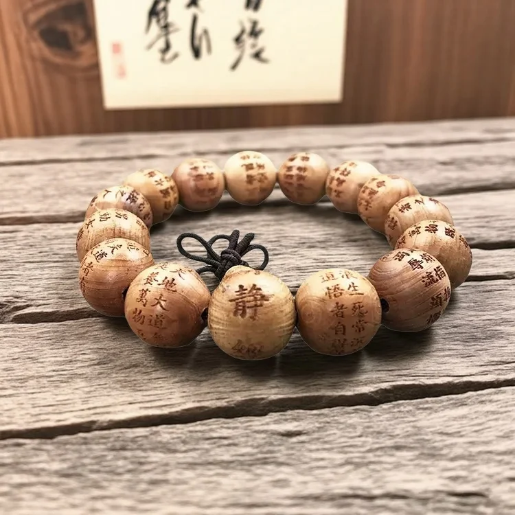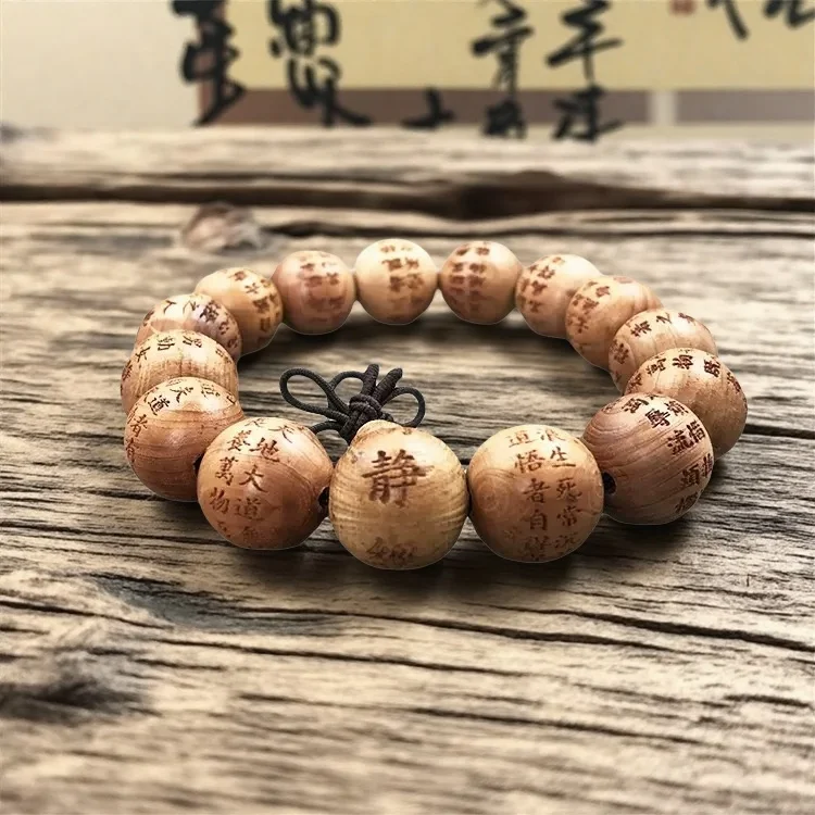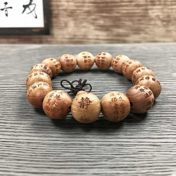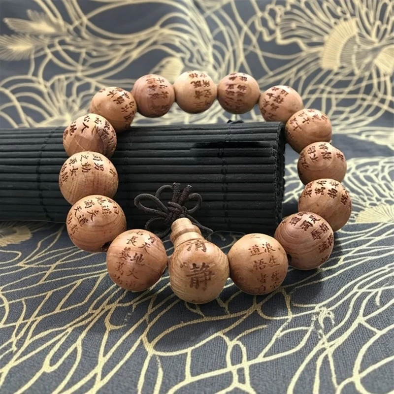 Carved Peaceful Buddhist Prayer Beads Bracelet Sandalwood Sculpture Taoist Wristwear Faionable Wooden Jewelry