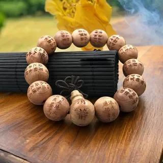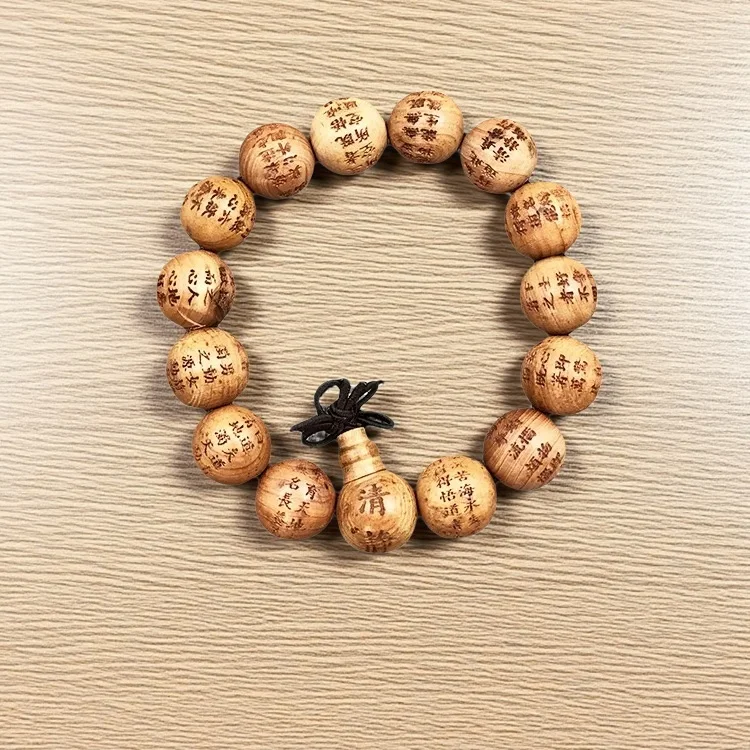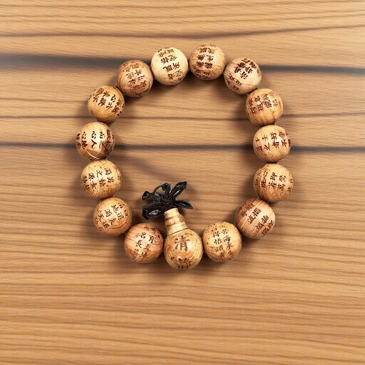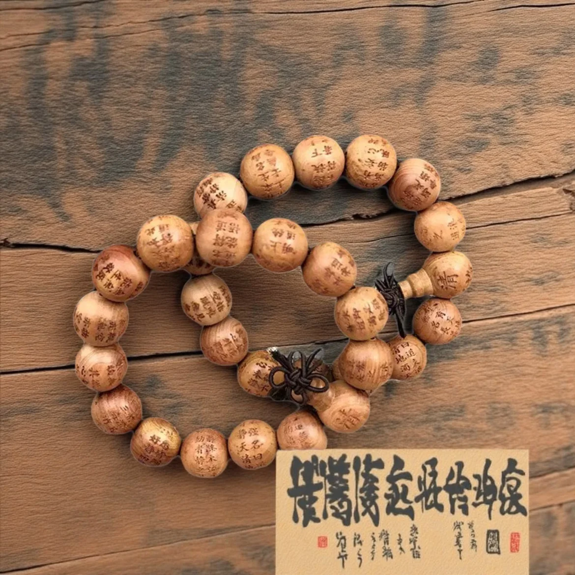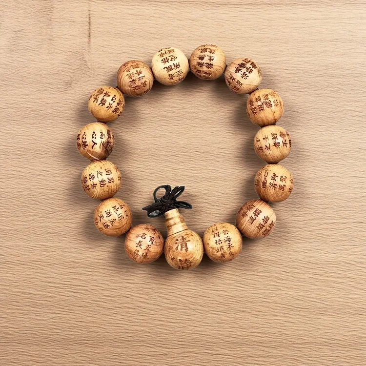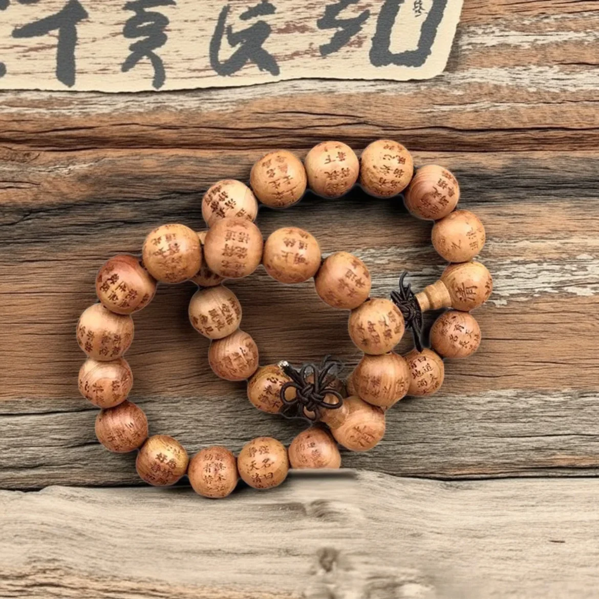 Carved Peaceful Buddhist Prayer Beads Bracelet Sandalwood Sculpture Taoist Wristwear Faionable Wooden Jewelry