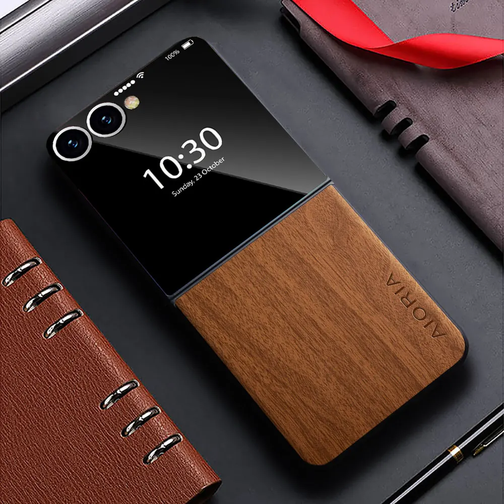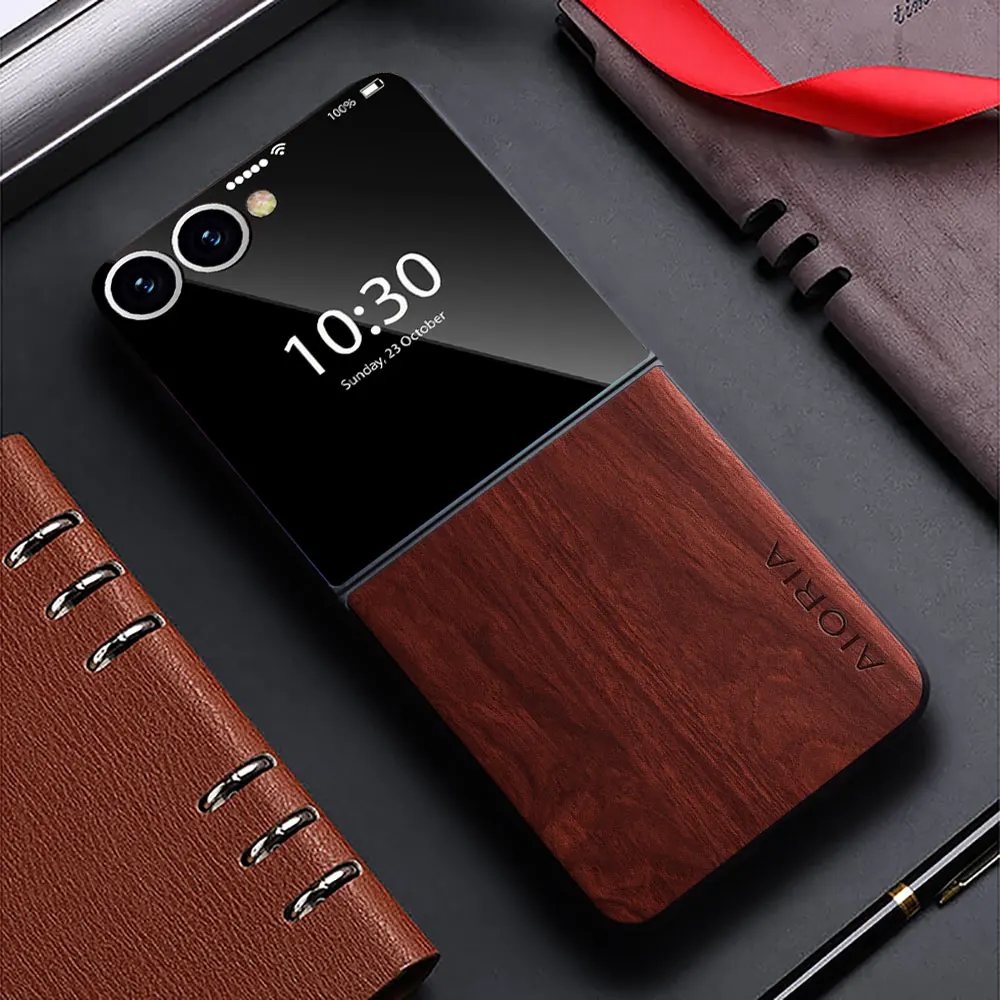 Case for Samsung Galaxy Z Flip 7 6 5 4 3 5G funda bamboo wood pattern Leather cover for galaxy z flip7 flip6 flip3 flip5 case