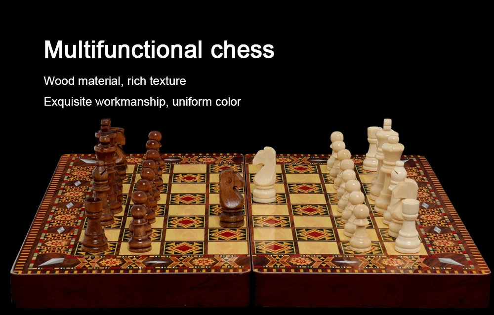 Chess Backgammon Foldable Intellectual Entertainment Game Portable Three-in-One Board Multiple Game Modes Luxury Knight Checkers