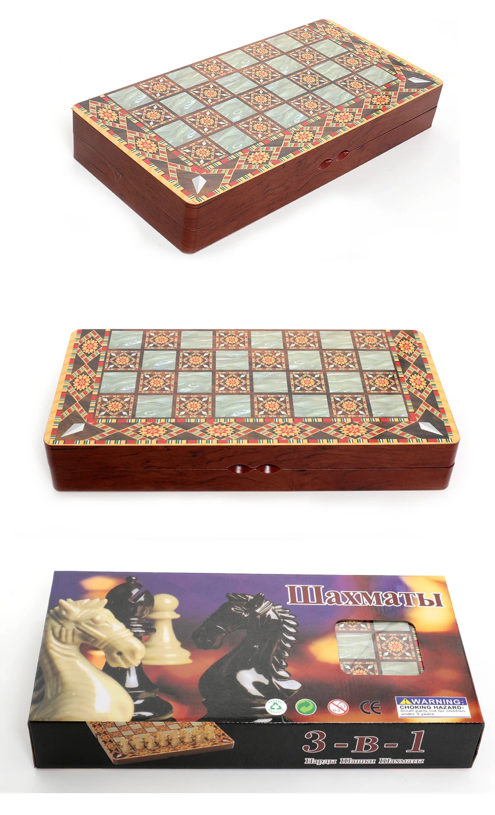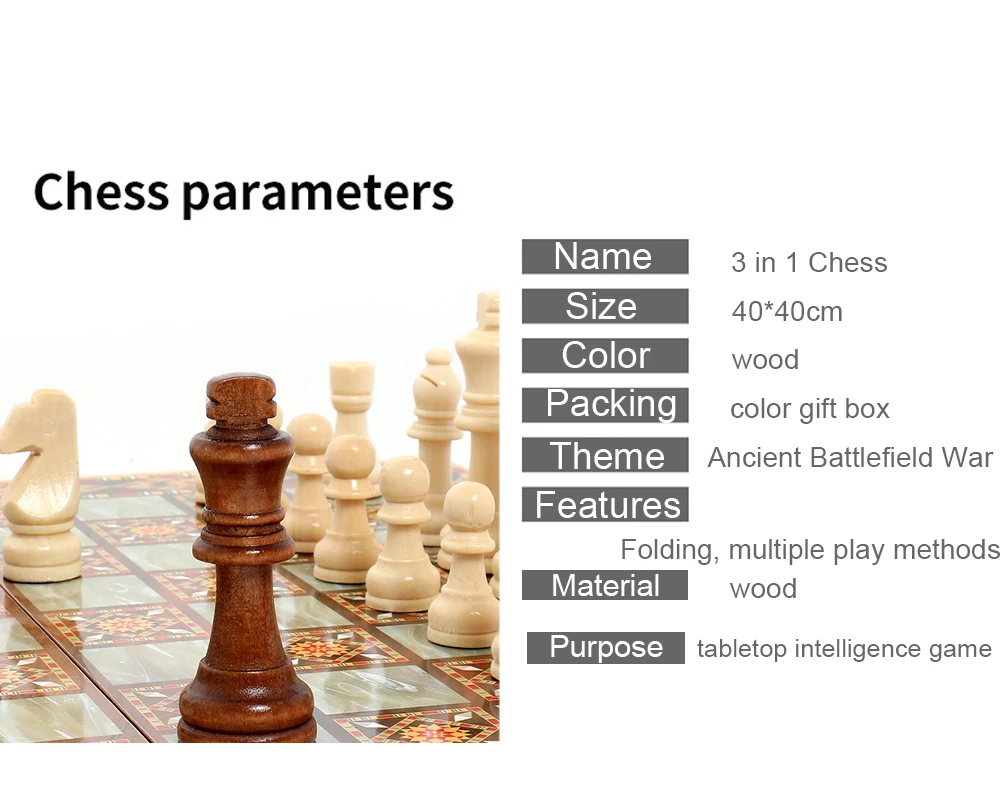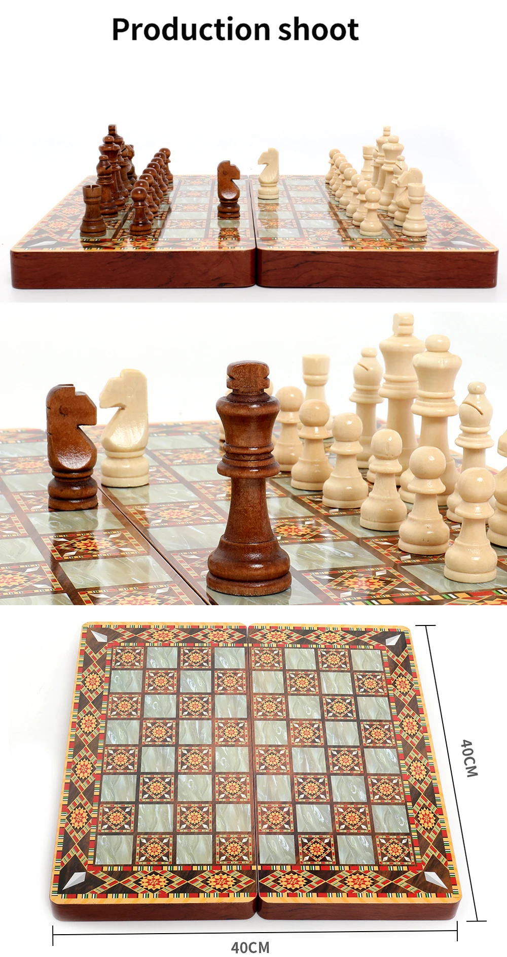 Chess Backgammon Foldable 40x40cm Intellectual Entertainment Game Portable 3-in-1 Board Multiple Modes Luxury Knight Checkers