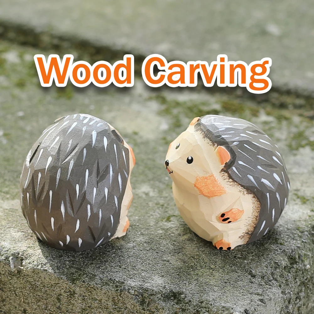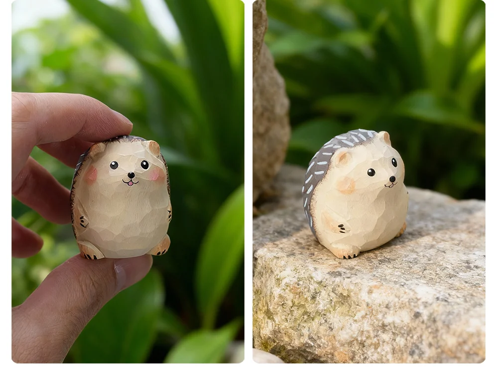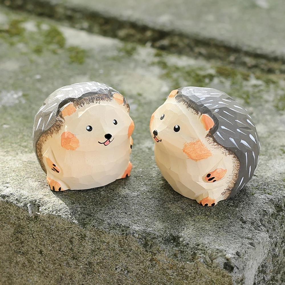 Christmas Decoration Hedgehogs Figurines Handmade Wood Carving Hedgehogs Ornaments Small Animal Handcrafted Wooden Carving