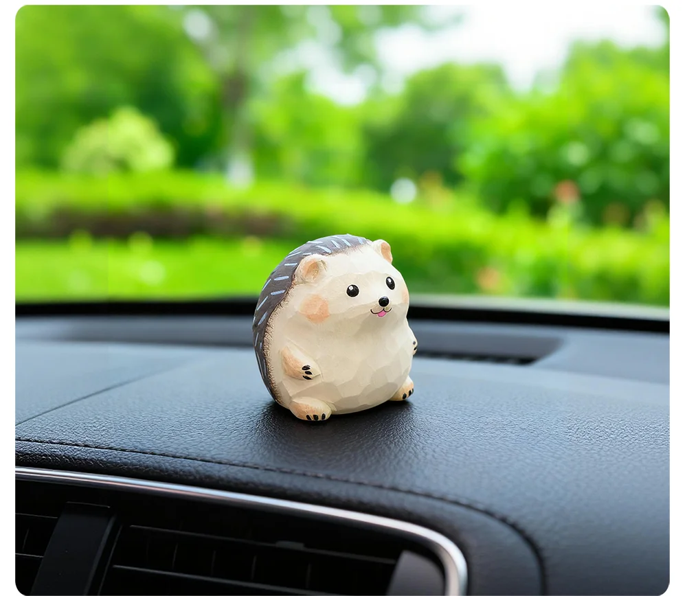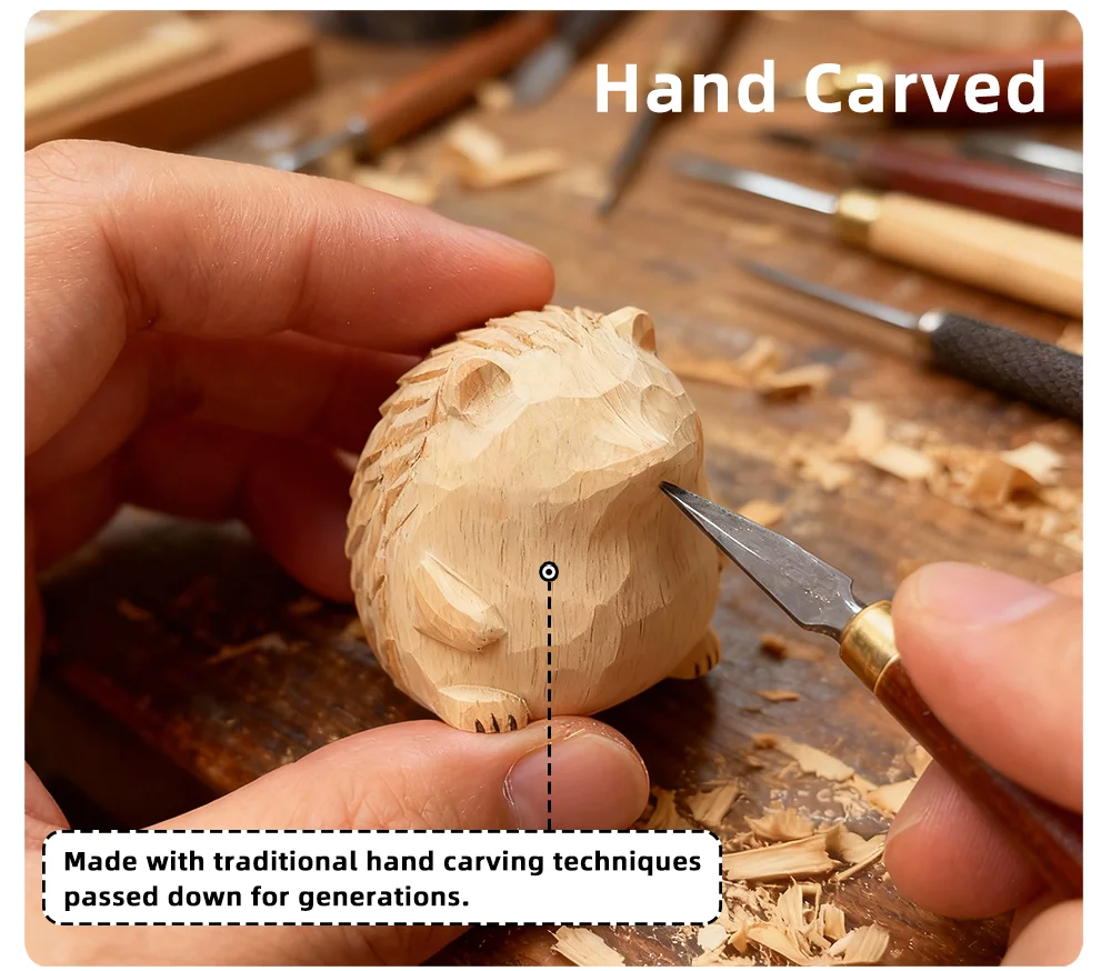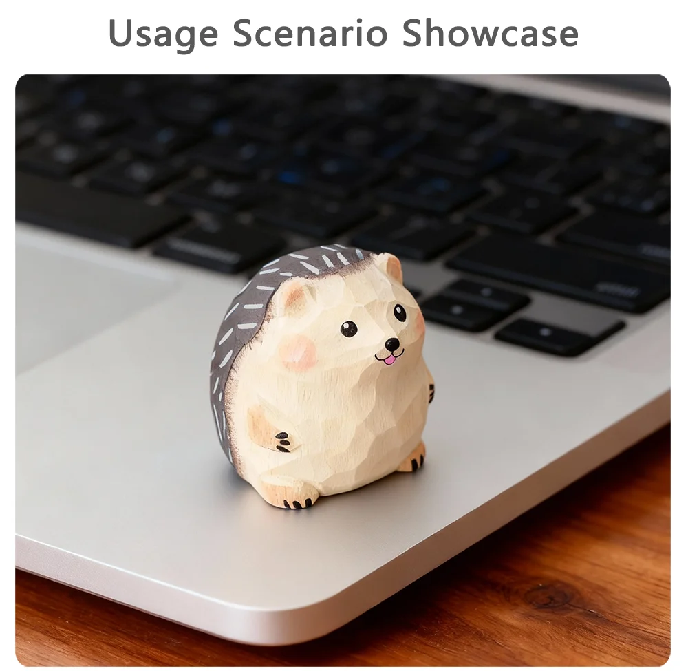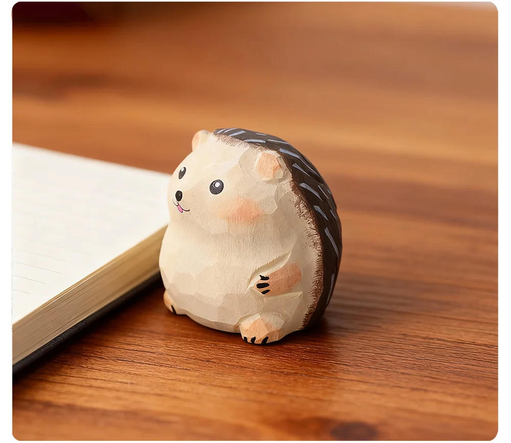 Christmas Decoration Hedgehogs Figurines Handmade Wood Carving Hedgehogs Ornaments Small Animal Handcrafted Wooden Carving