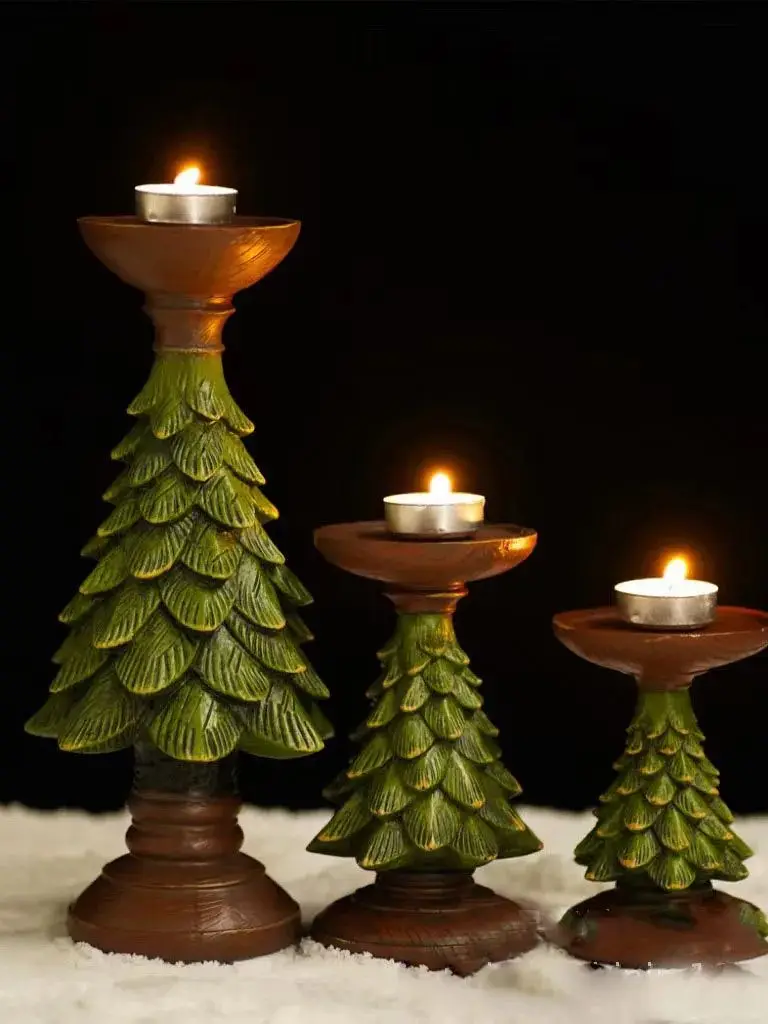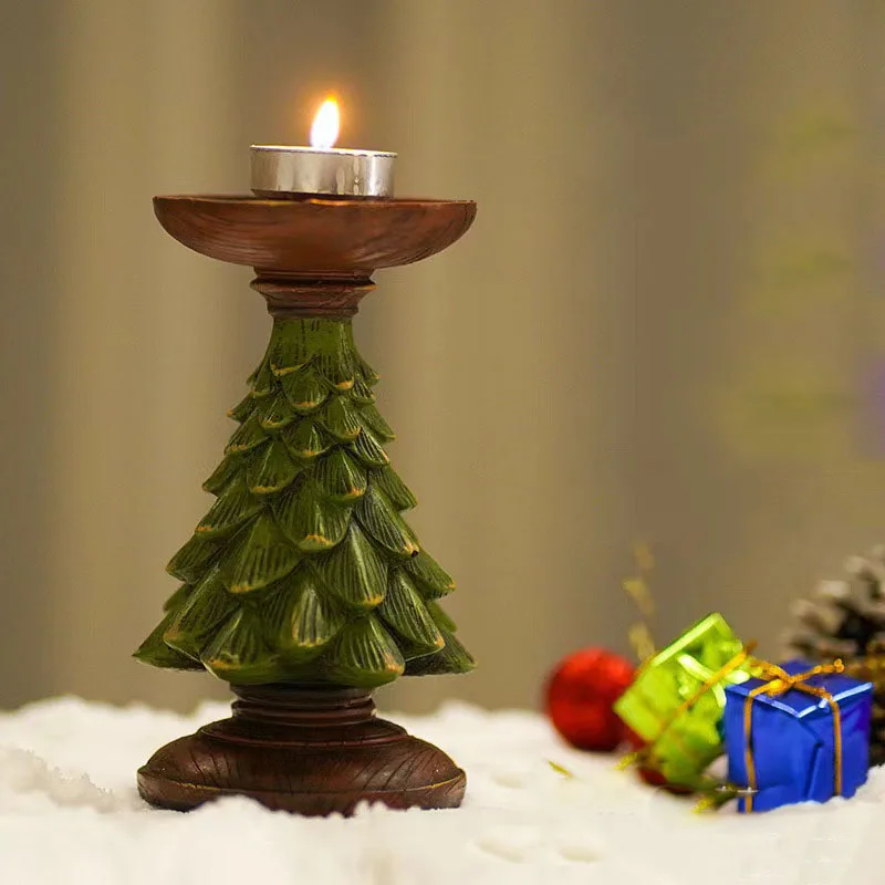 Christmas Tree Candle Holder Ornaments Ins Style European Style Home Living Room Desktop Decoration Crafts Wooden Candle Holder