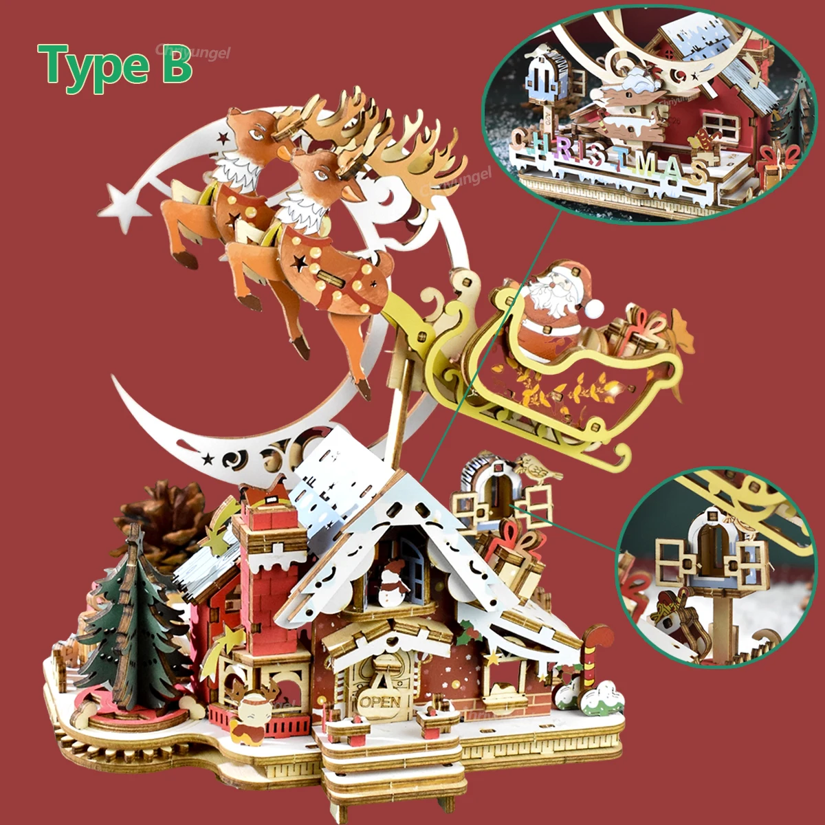 Enjoy a magical Christmas ambiance! Once assembled, gently rotate the lever to watch your festive scene (e.g., Santa Claus) spin gracefully while a classic Christmas melody plays, creating a heartwarming atmosphere for your home.