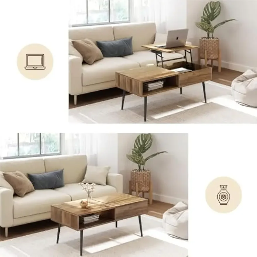 • Versatile Design: Experience ultimate flexibility with the innovative lift top mechanism of this living room tables. Adjust the height for work, meals, or leisure drinks, making it a perfect couch table that adapts to your lifestyle needs.