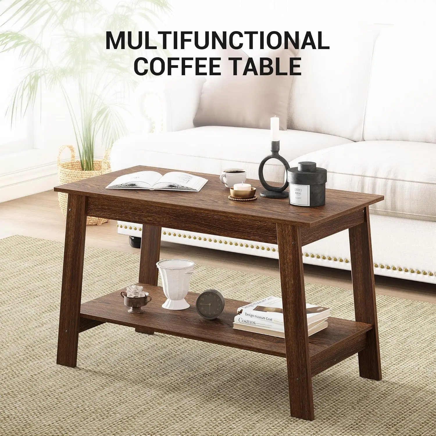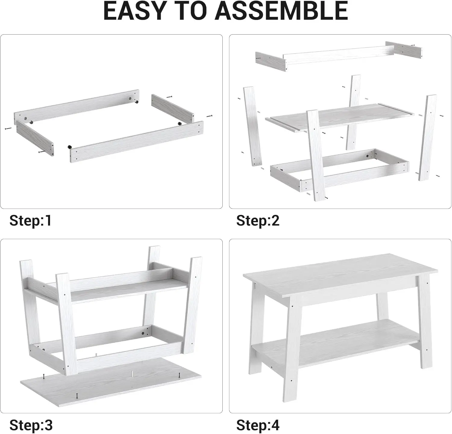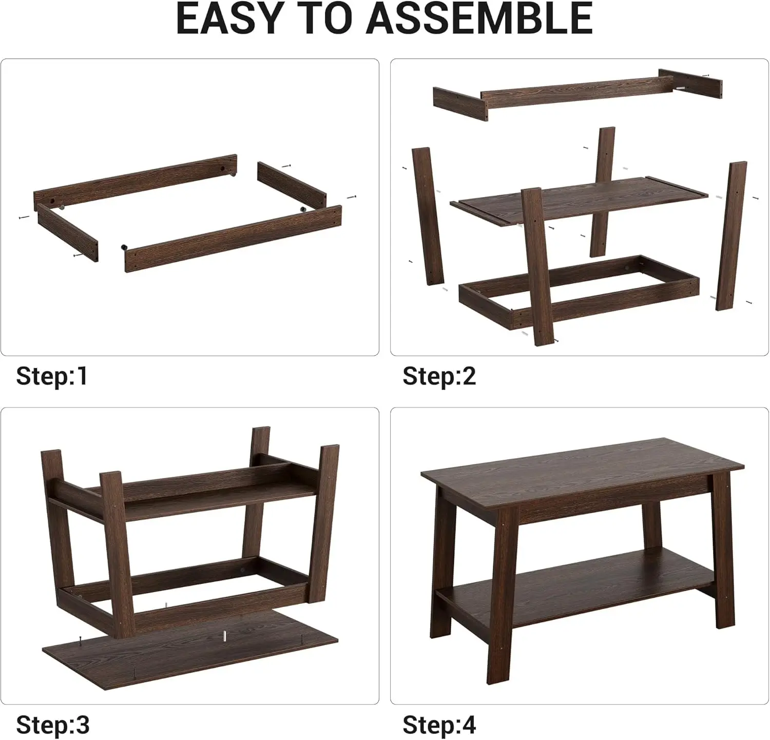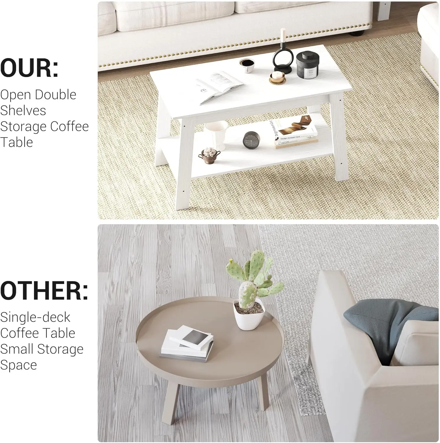 Space-Enhancing Storage: Discover the beauty of efficient organization with the clever two-tier design of this coffee table. Its expansive rectangular storage area is perfect for neatly tucking away everything from magazines and remote controls to decorative baskets and greenery. Designed for convenience and aesthetic appeal, it keeps your space tidy and stylishly accessorized without compromise.
