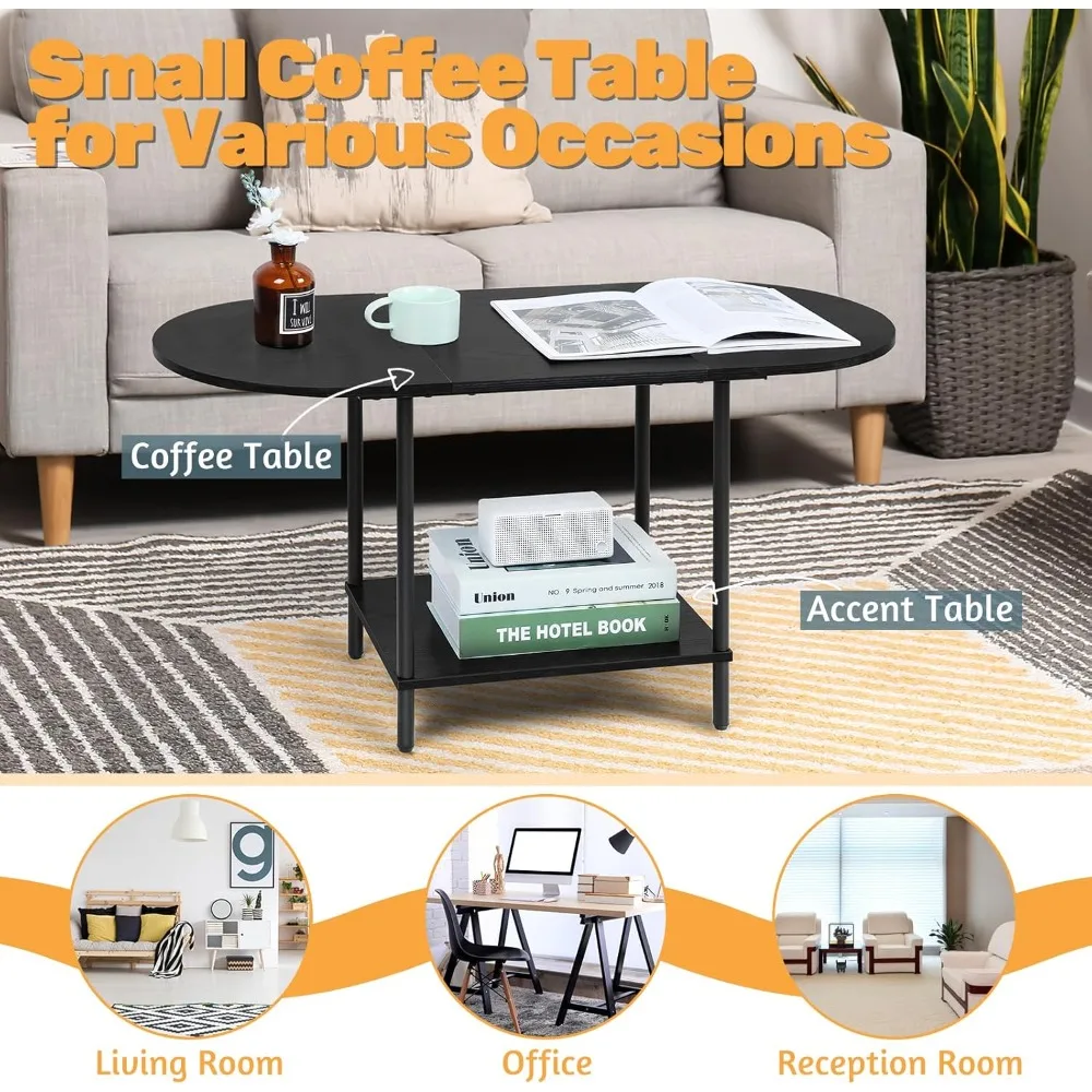 - Spacious Storage Space - The simple design of this small coffee table with 2-tier storage shelves provides you plenty of space to store books,magazines,remotes,and other small items,keeping your living room neat and organized