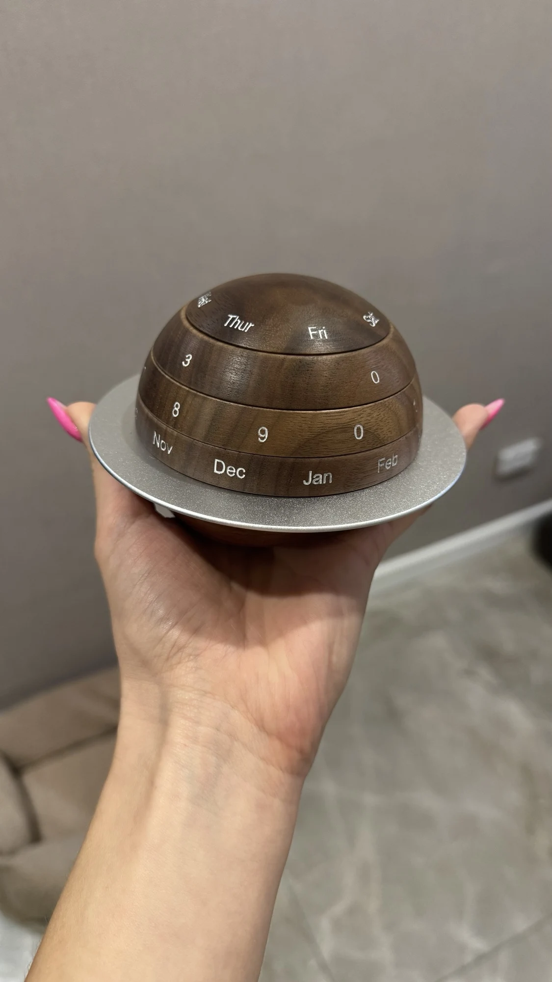 1.Novel Design: Don't forget important events with this wooden rotating calendar's distinct design- each layer manually rotates for seamless tracking with the ball signifying the current date, ensuring you'll never miss a beat