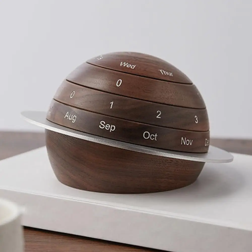 Creative Earth Wooden Rotary Daily Calendar Countdown Desk Perpetual Calendar Ornaments For Home Office Desktop