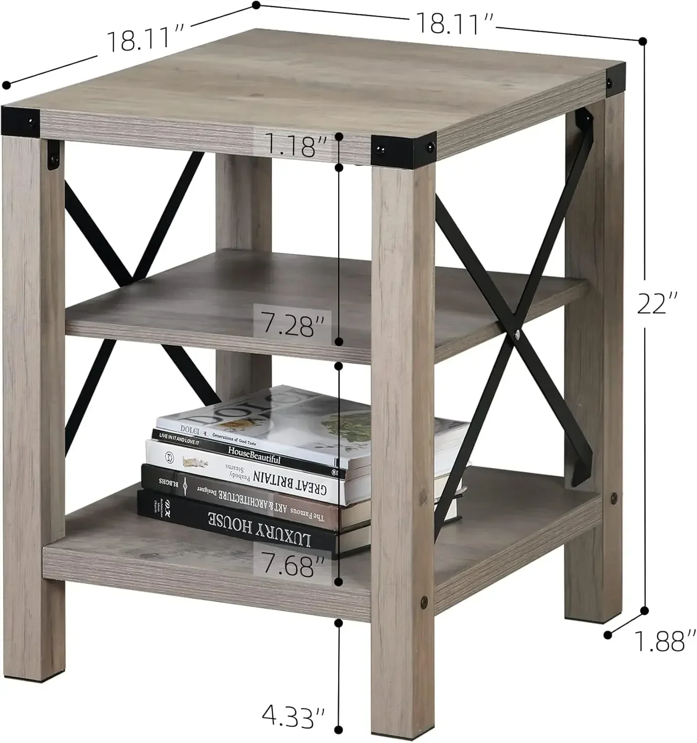 • SMALL SPACE SOLUTION: Measuring 22.5" H x 18.1" L x 18.1" W.Our industrial wind side table with a removable middle panel, according to your needs to install and remove. this table looks great set by a living room sofa or in narrow spaces such as an entryway or hallway.