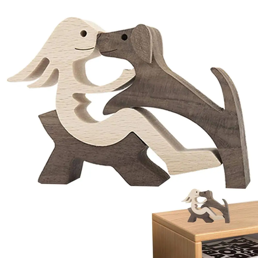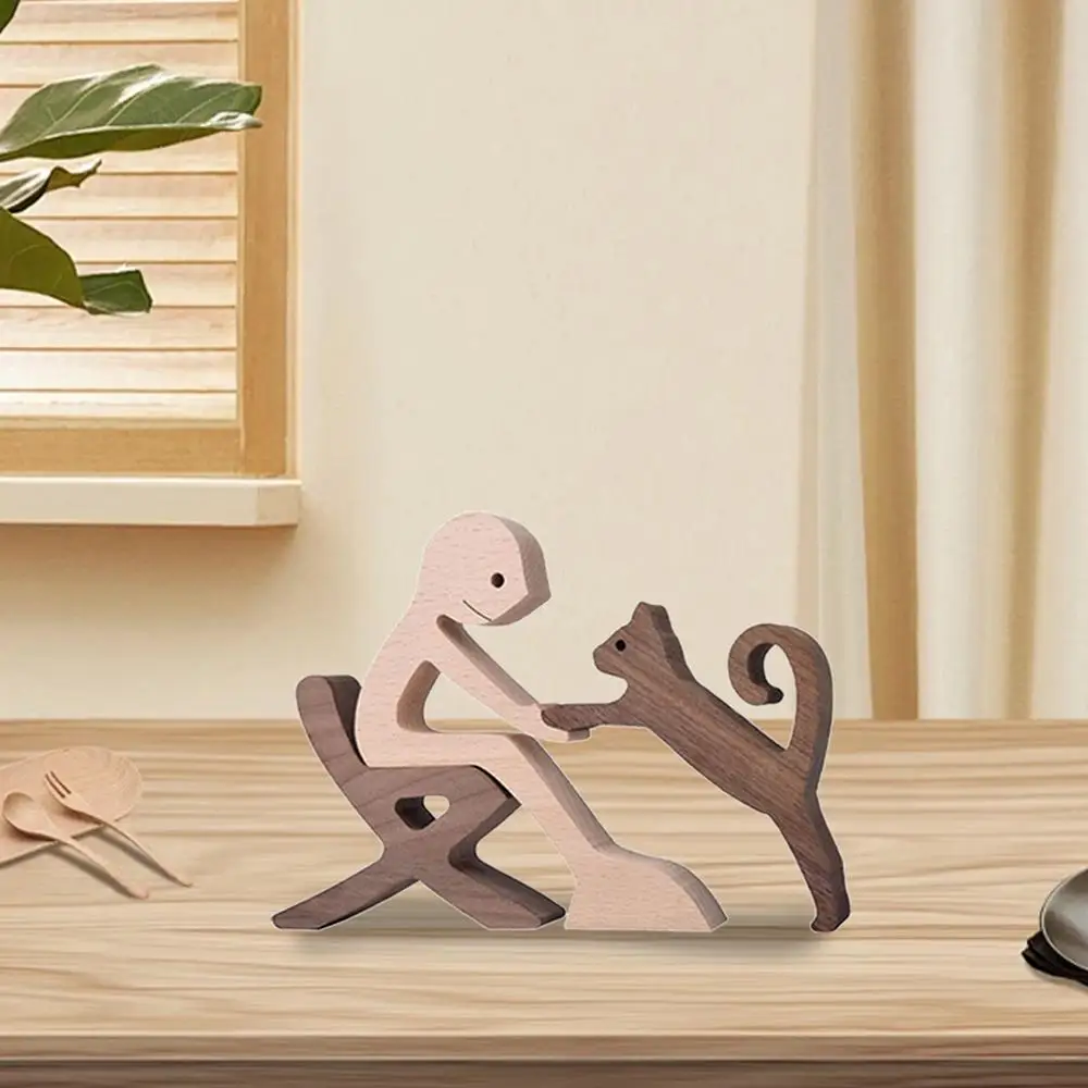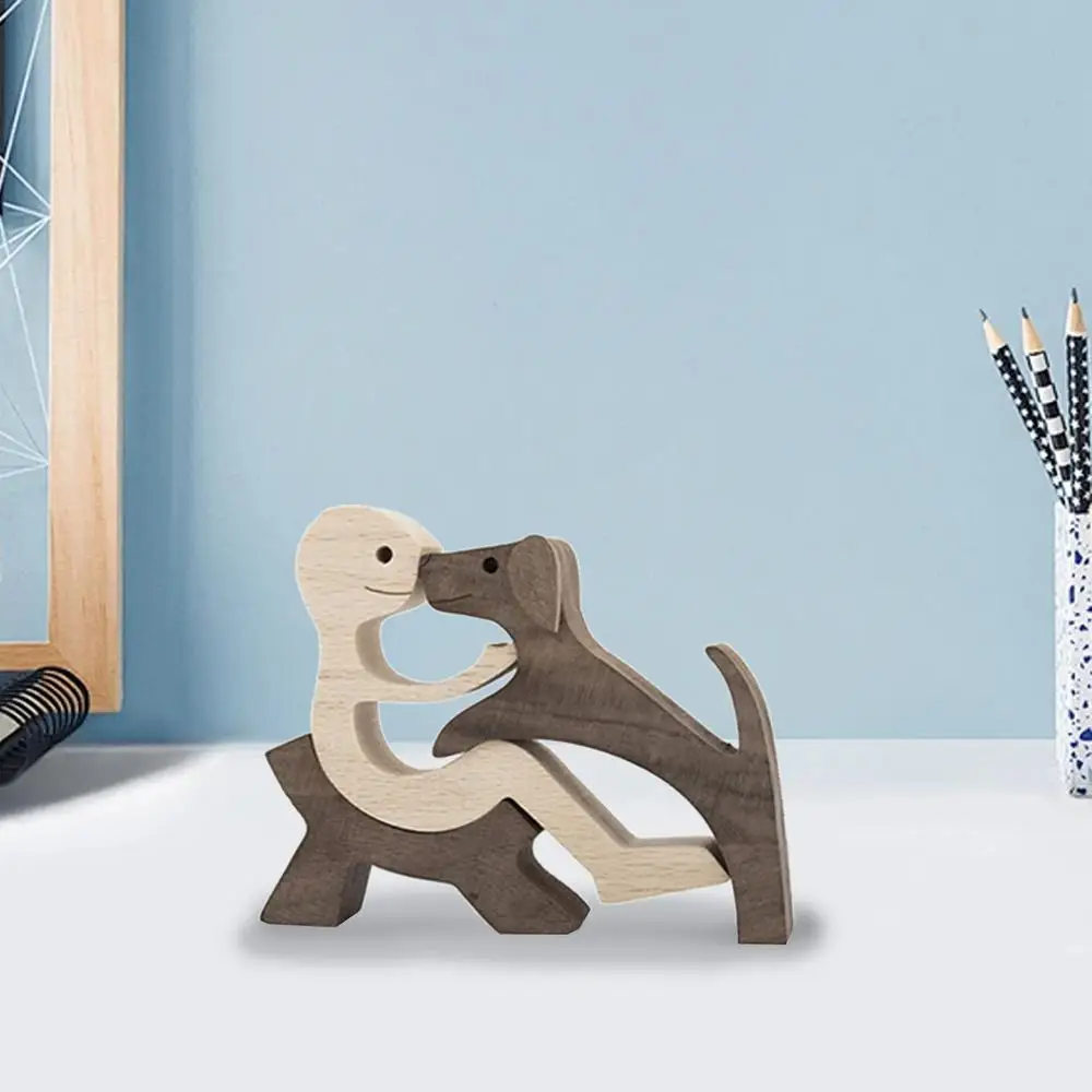 Cute Wood Dog Human Statue Craft Figurine Desktop Table Ornament Carving Model Home Room Decoration Pet Sculpture Christmas Gift