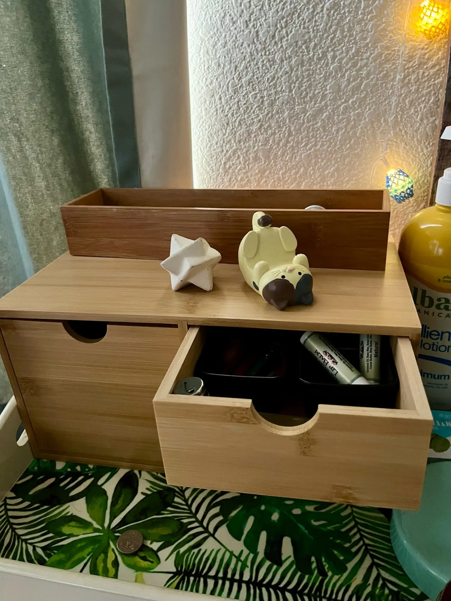 Do you want to say goodbye to clutter and improve your quality of life? Then you cannot miss this product. The bamboo desk organizer is harmless, odorless, and environmentally friendly. It has a large size and a total of 3 drawers, allowing you to sort and store your items according to your needs, organizing your desktop to restore neatness.