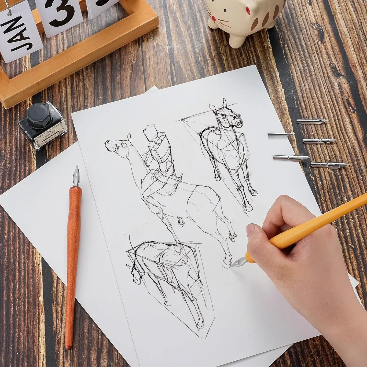【Effortless to Use & Clean】 Dip ink directly and start drawing or writing. The ergonomic wooden holder ensures a comfortable grip, even during long sessions, and allows for quick nib replacement.