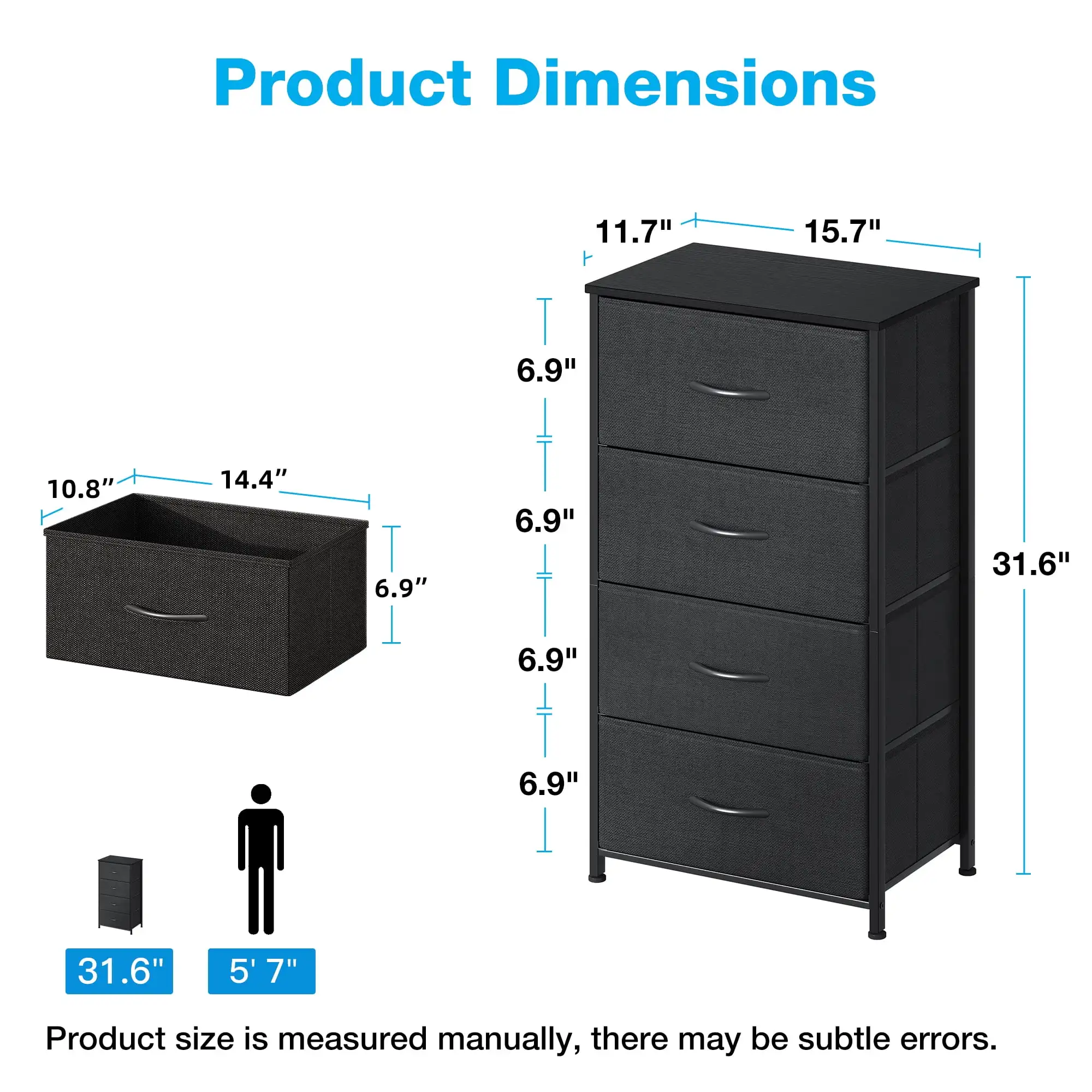Dresser for Bedroom with 4 Storage Drawers, Small Dresser Chest of Drawers Fabric Dresser with Sturdy Steel Frame, Black