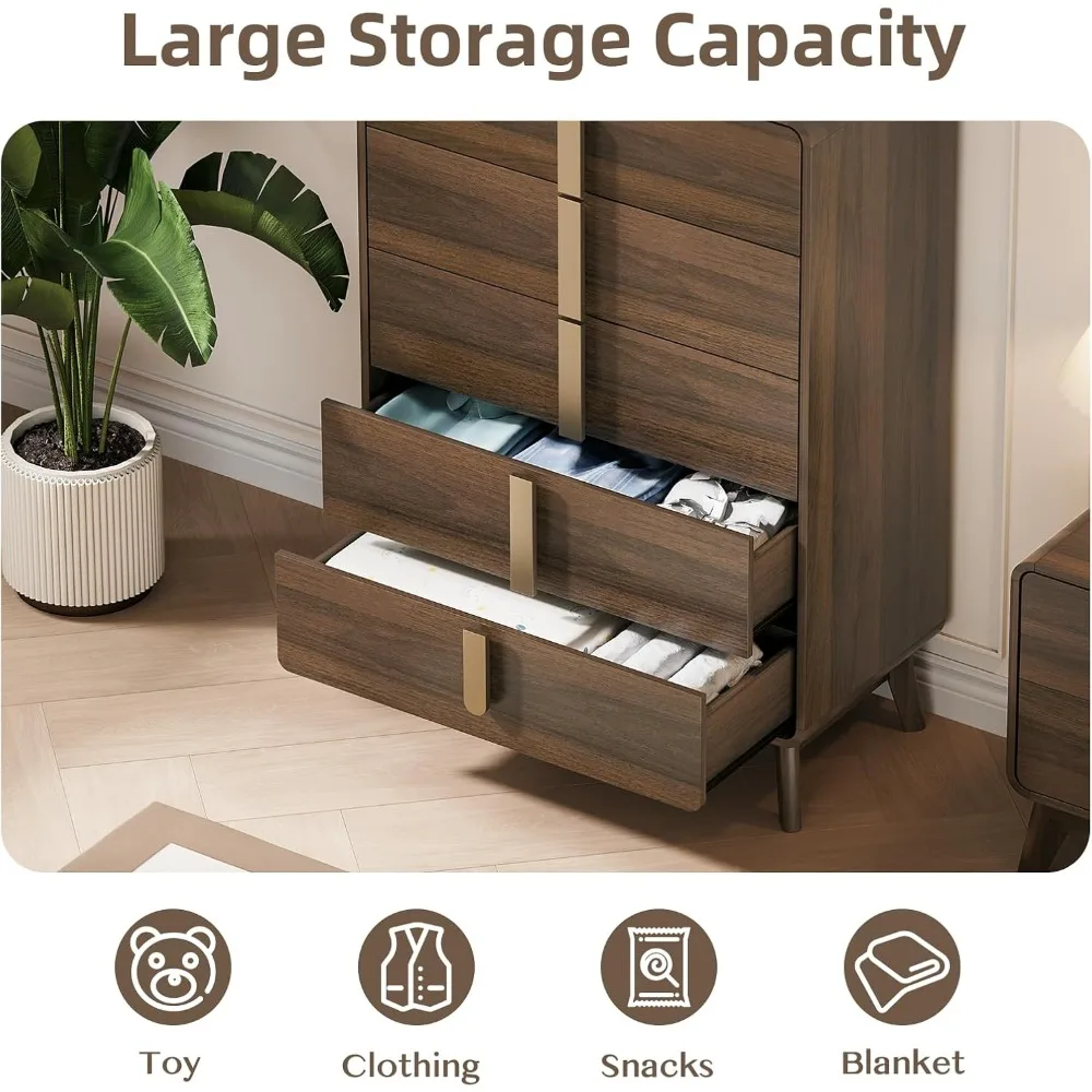 - Mid-Century Modern Design:This 5 drawer dresser showcases a refined mid-century modern aesthetic, featuring clean minimalist lines, precision-crafted linear metal handles, and a solid wood leg structure that radiates timeless elegance and sophistication.