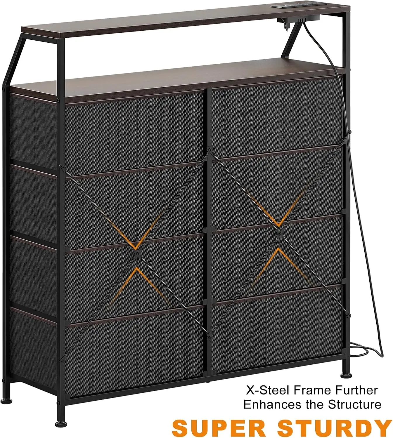 • Tall 8 Drawers Dresser: Black dresser size: 37.6" L x 11.4" W x 41.9" H. Bedroom dresser with drawers has 8 separate foldable drawers, providing large storage space to meet your classified storage needs for clothes, shoes, toys, cosmetics, and more