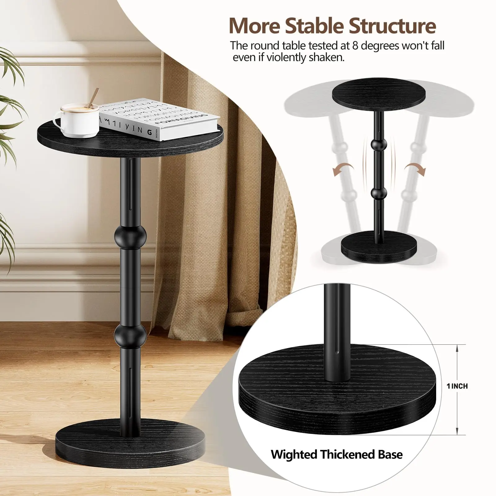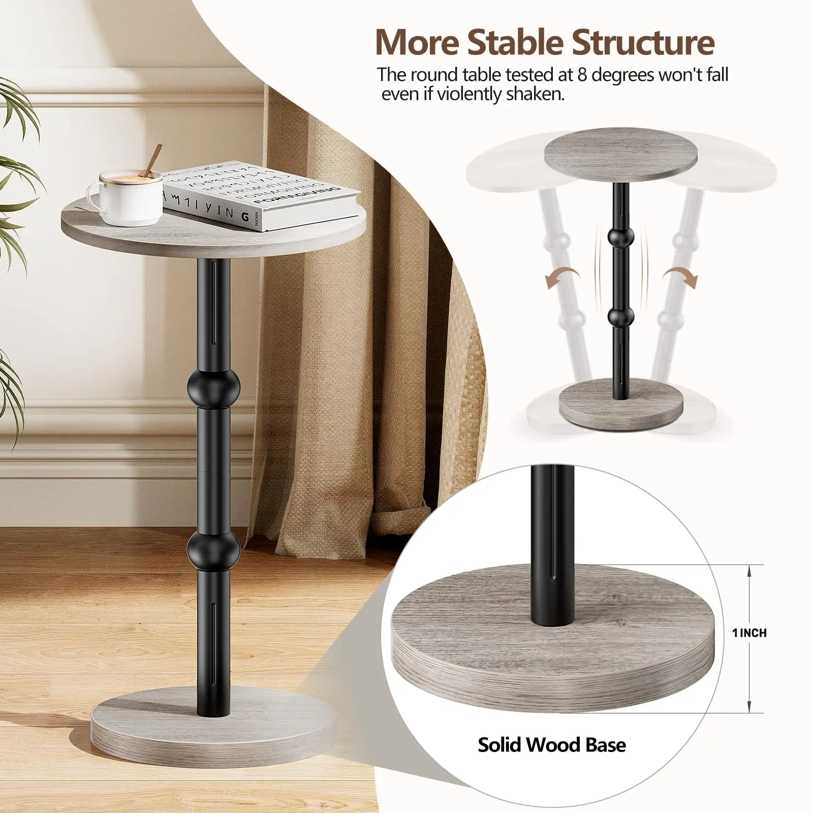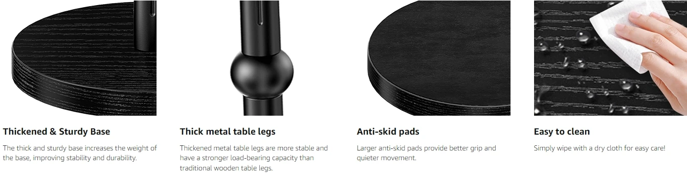 Sturdy & Durable Structure: The side table features a tabletop crafted from high-density MDF, supported by a high-load-bearing metal bracket table leg. Its weighted wooden base ensures enhanced stability, maintaining rock-solid steadiness even at an 8° tilt – even under vigorous shaking