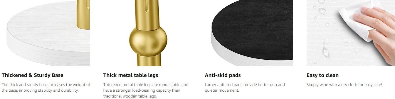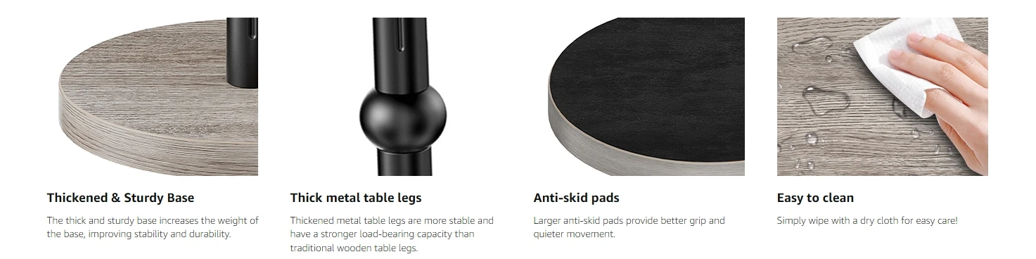 Easy Assembly: The small round side table features a simple structural design, clearly labeled parts, and detailed assembly instructions,You can quickly assemble the coffee table in 5 minutes without the need for special tools.