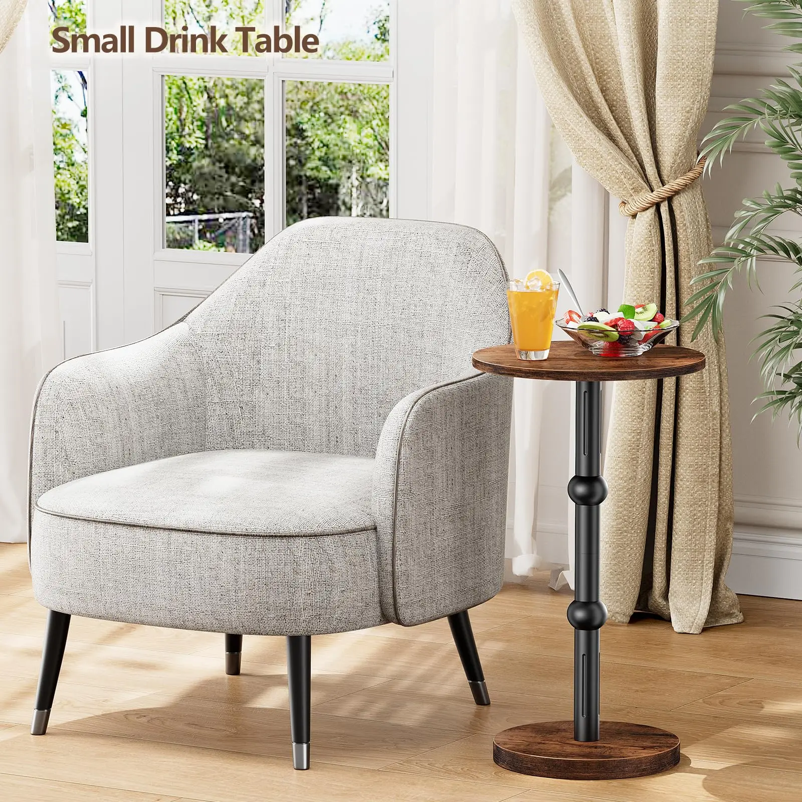 Drink Table Small Round Side Table for Small Spaces Accent with Metal Leg Thickened Wood Pedestal Coffee Tables for Living Room