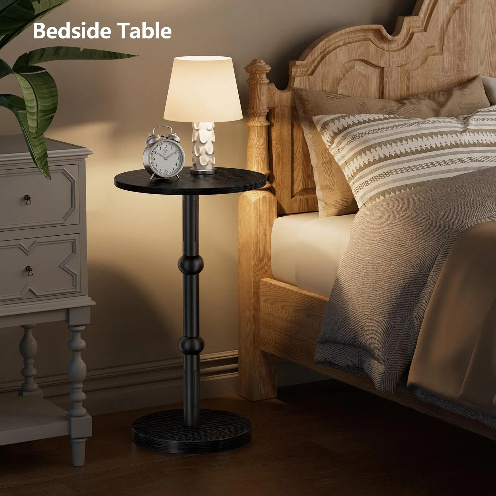 Fit for Small Space: The small end table overall dimensions : 11.8"L×11.8"W×21.7"H, Compact size — ideal for small space living, Fits perfectly in tight spaces like sofa corners, dorms, and apartments or bedroom. Its compact footprint allows flexible placement anywhere.