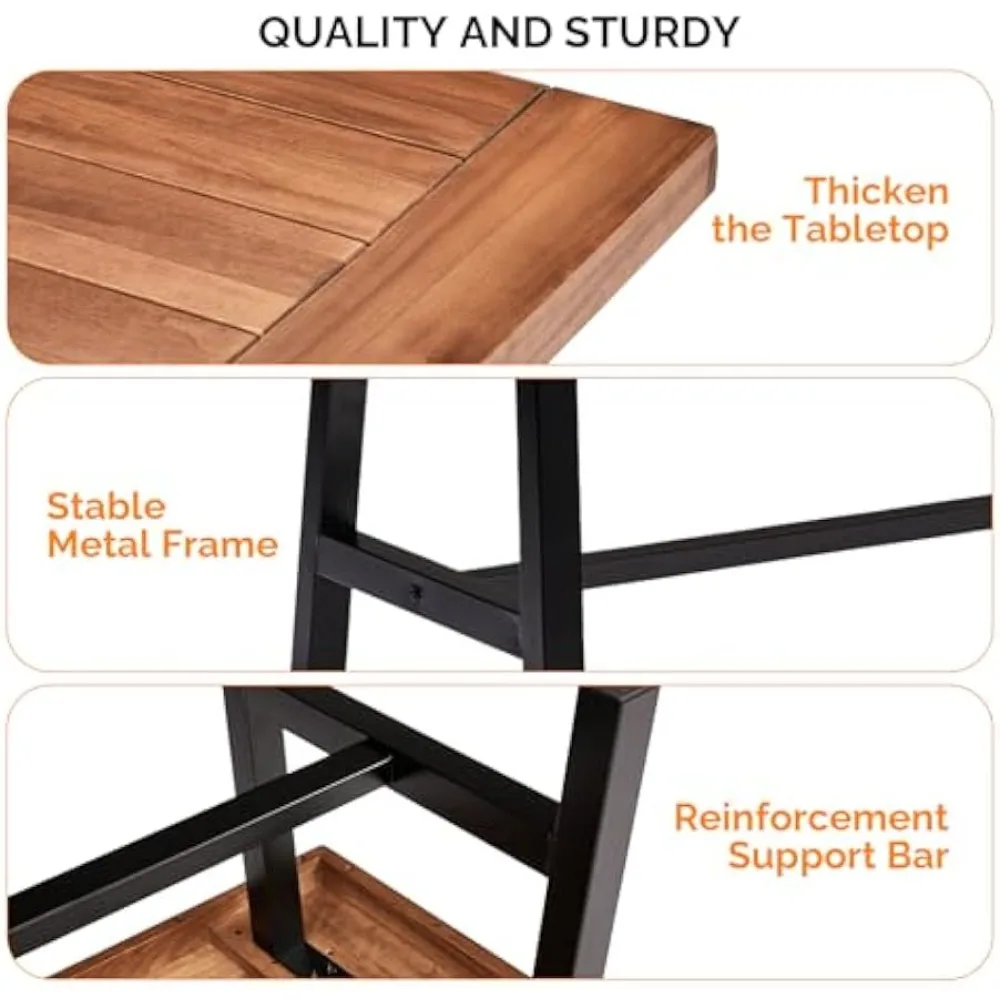 This item features a robust and long-lasting construction with a 1.97-inch thick solid wood table top and 1.57-inch reinforced I-beam steel legs, designed to withstand up to 320lbs of weight. It offers all-weather protection with a triple-layer PU coating on the wooden surface and a powder coating on the metal frame, making it waterproof and resistant to rust and humidity. The sturdy I-beam design includes an H-shaped crossbar base with a widened stance of 22.05 inches, providing stability on uneven outdoor surfaces such as grass or gravel. The table boasts ergonomic dimensions with a spacious 45.28-inch tabletop and an ideal height of 17.92 inches, suitable for patio seating arrangements and outdoor entertainment. It is versatile in use, functioning as a coffee table, BBQ serving station, garden plant display, or poolside storage hub, all with a quick-dry surface.