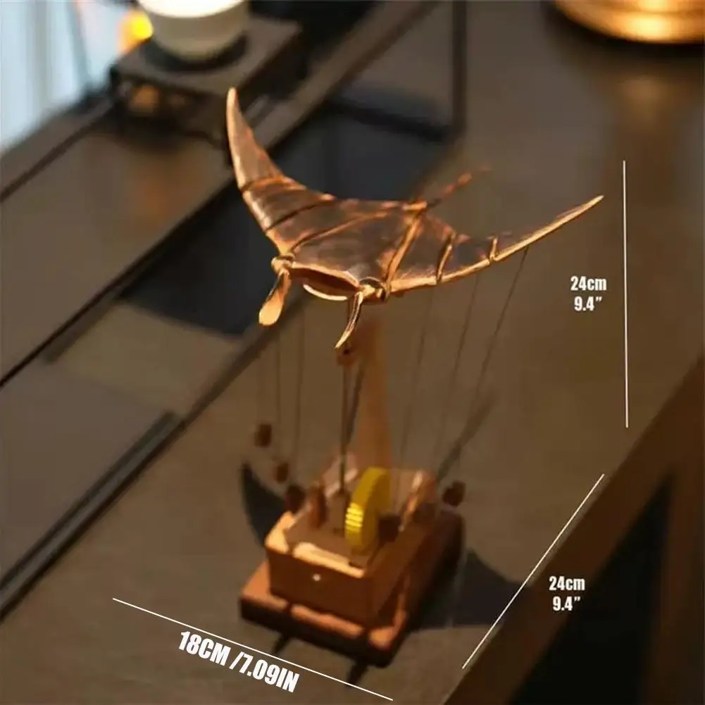 1. Upgraded handmade wooden motorized manta ray figurine, combining exquisite craftsmanship with innovative technology, displays lifelike swimming movements, adding a vibrant marine touch to your home.
